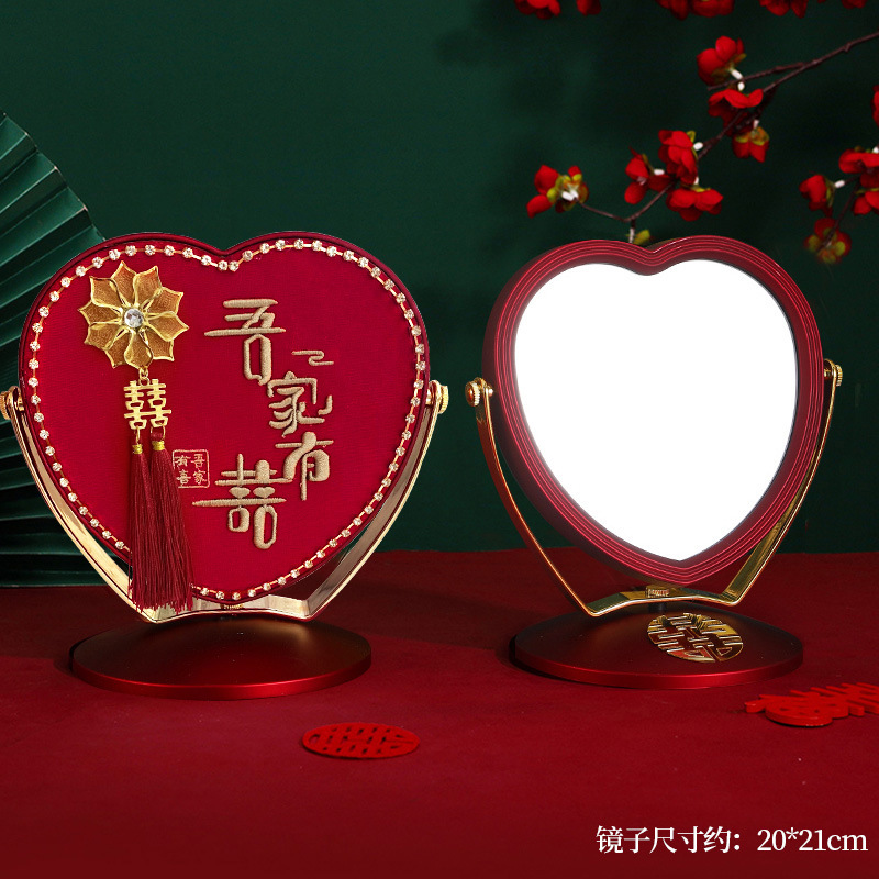 웨딩 용품 빨간 거울 신부 지참금 웨딩 테이블 휴대용 레이스 레이스 새로운 도착 메이크업 거울
