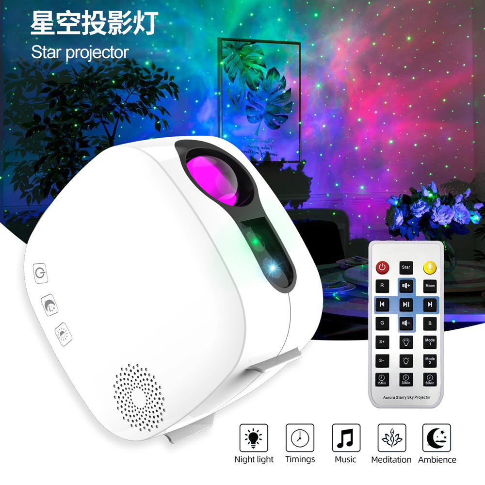 梦幻七彩极光星空投影,可自由手动切换星星云彩月亮模式和控制云彩颜色,产生十多种星云变化组合,或使用自动模式,内置定时器,蓝牙音乐,星云速度调节,灯光亮度调节。在家就能置身梦幻星空下,带来全心身的放松。定时器(15、30、60分钟定时)可以方便帮助进入睡眠。