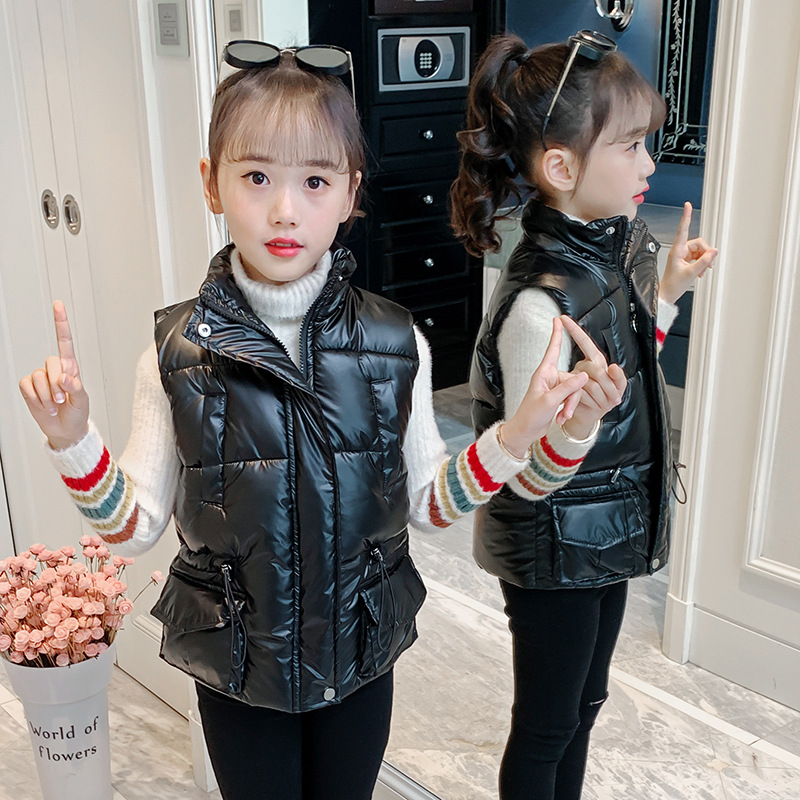 여아용 면 조끼 2025 신상 겨울옷 두꺼운 보온 재킷 세련된 광택 가죽 무세탁 데님 면 재킷 면옷 트렌디