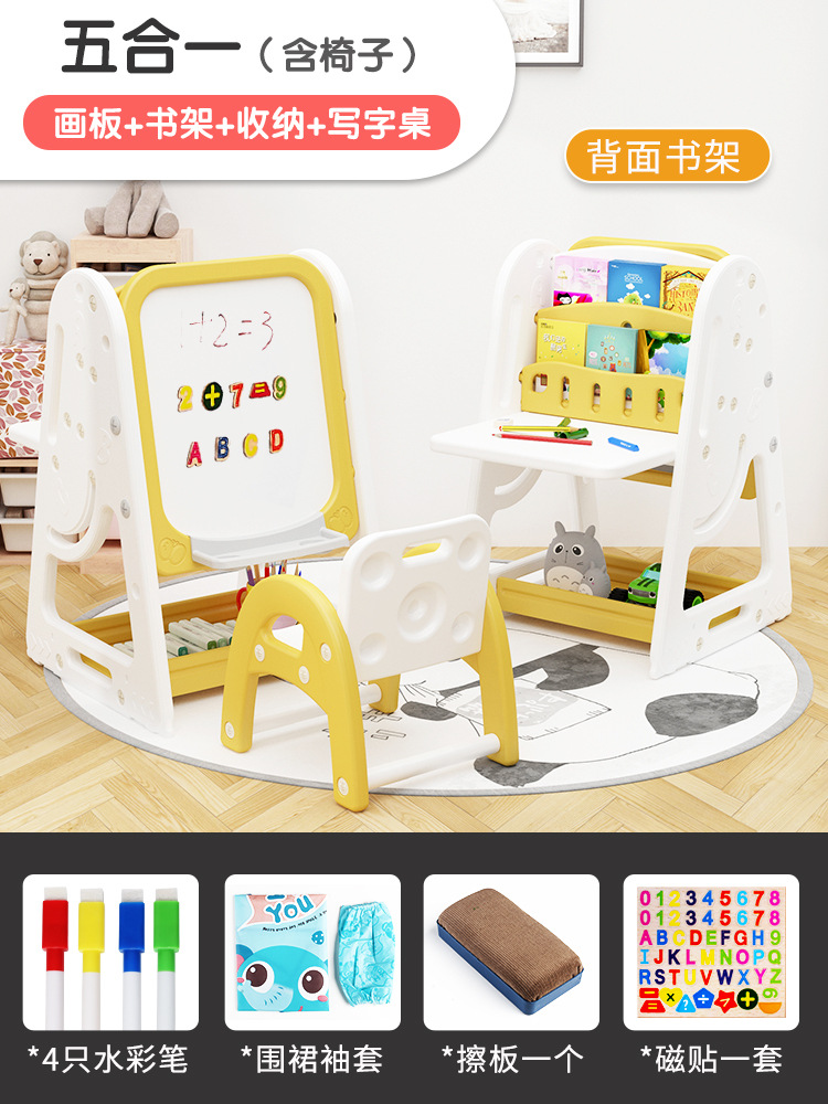 • 다기능 드로잉 보드 책장 [밝은 황색] + [스툴]]