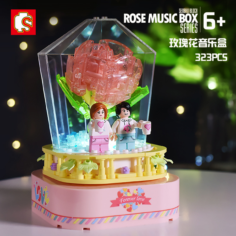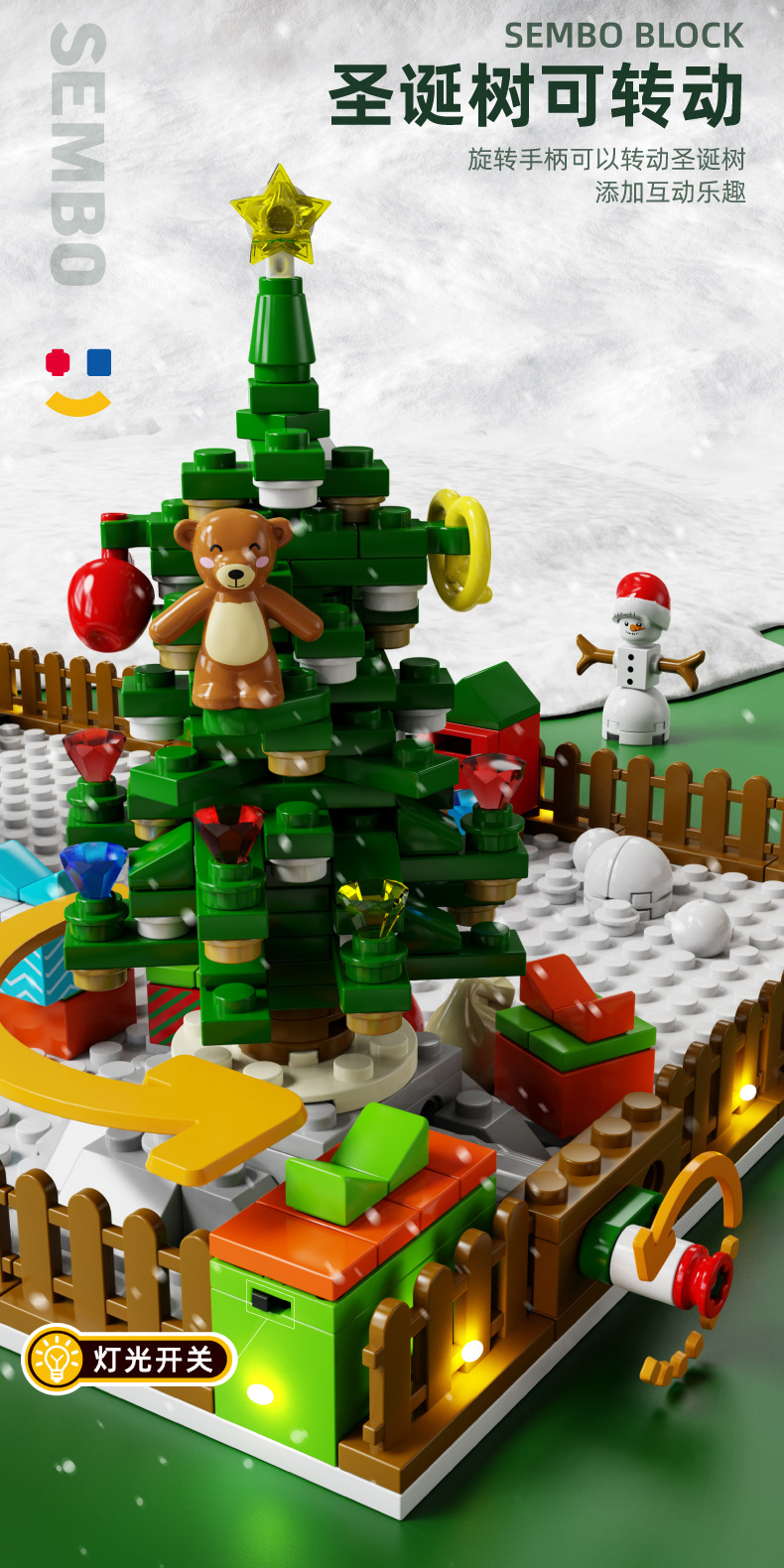 레고 크리스마스 트리 블록과 호환 회전 가벼운 음악 창조적 인 장식품 어린이 교육 조립 크리스마스 선물스토어 가기