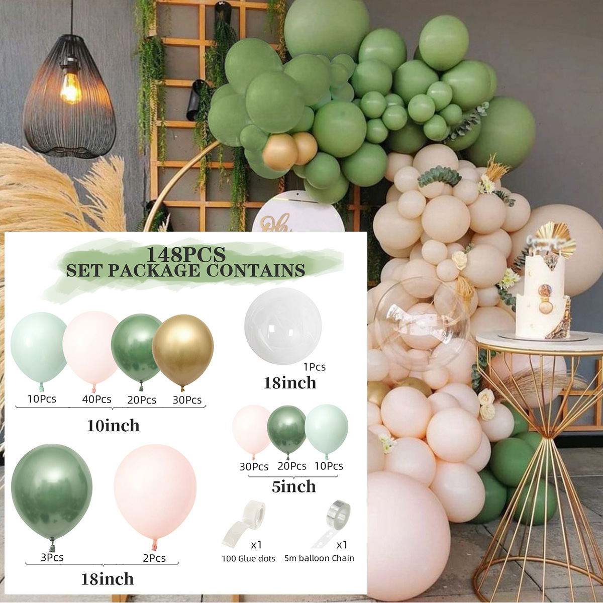 마카롱 풍선 5인치 12inch 10inch 크로스보더 풍선 체인 세트 생일 풍선 배열 고급형