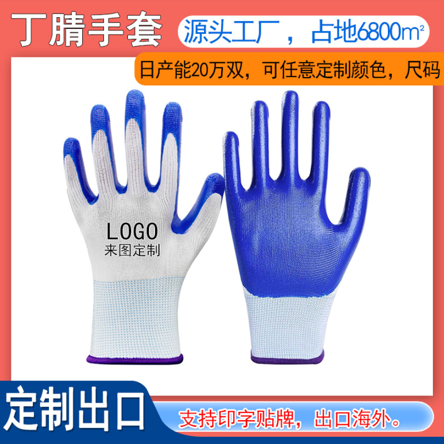 맞춤형 13침 나일론 폴리에스터 백색사 블루 젤 니트릴 안전 장갑 블루 젤 코팅 미끄럼 방지 고무 장갑스토어 가기