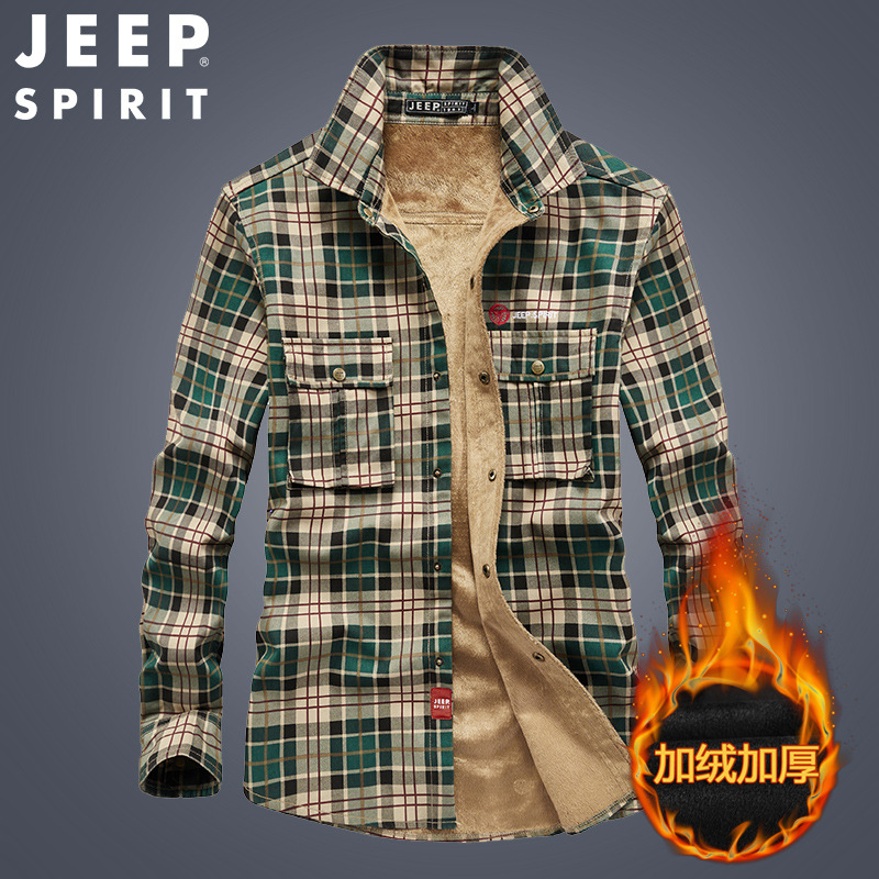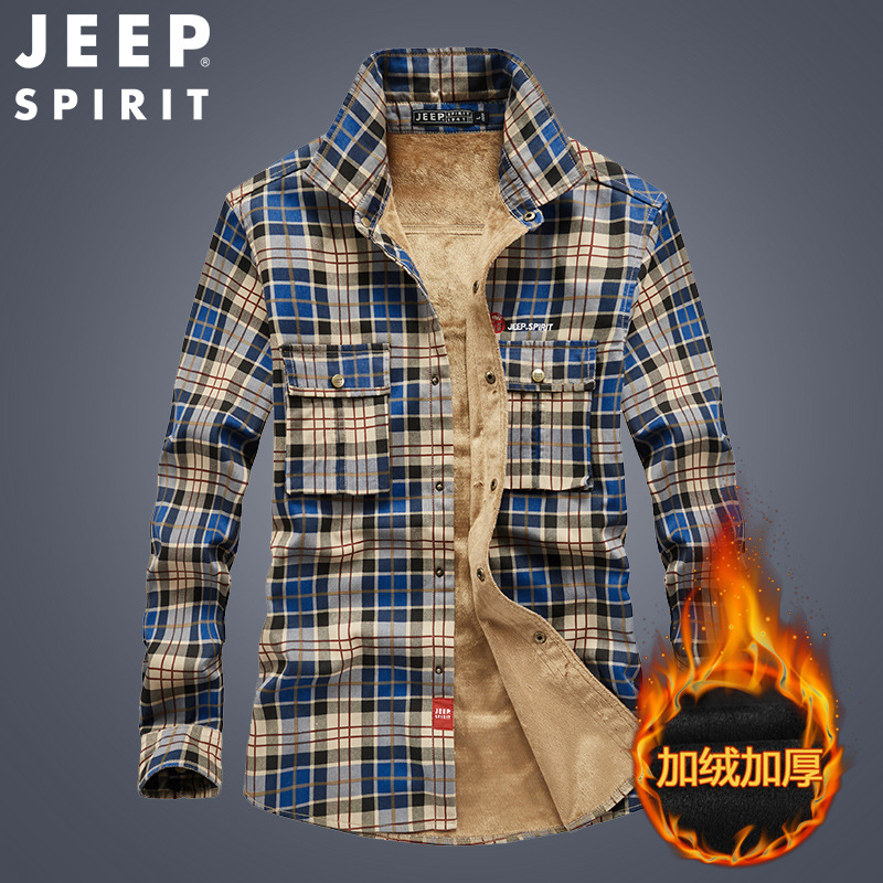 JEEPSPIRIT 기모 두꺼운 긴팔 셔츠 남자의 가을과 겨울 셔츠 슬림핏 따뜻한 셔츠 HL8872