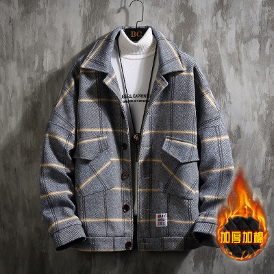 두꺼운 느슨한 모직 코트 남자의 2020 가을과 겨울 새로운 한국 유행 잘 생긴 유행 모직 재킷 코트스토어 가기