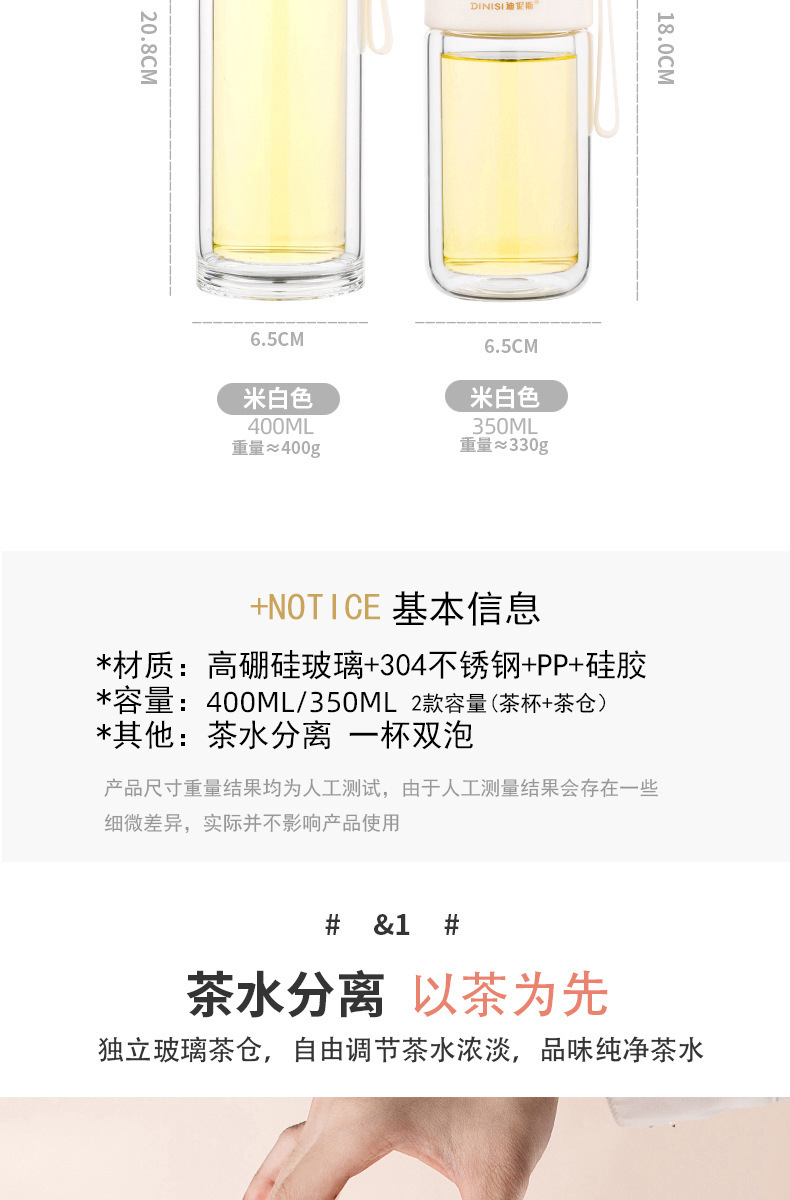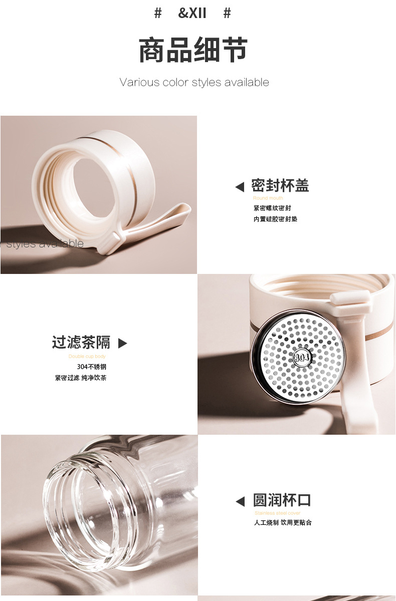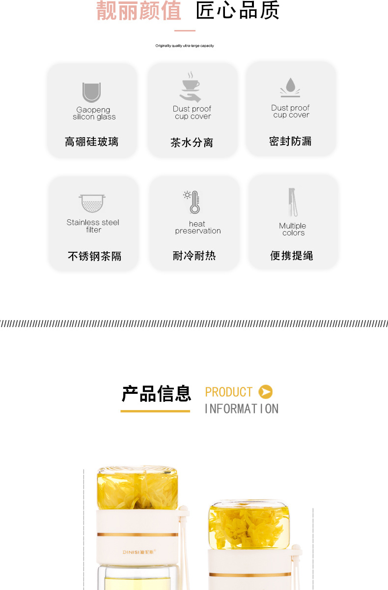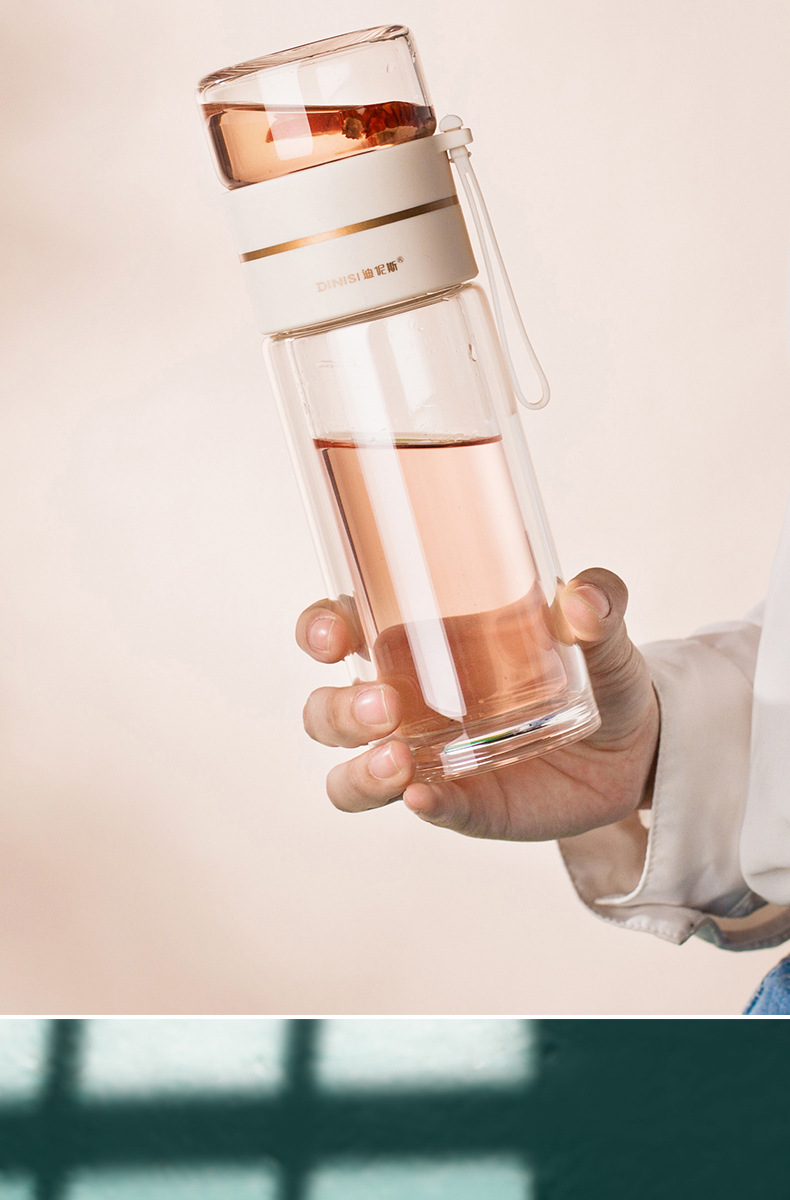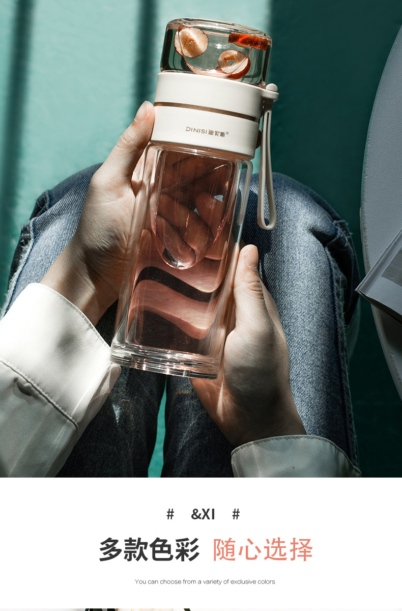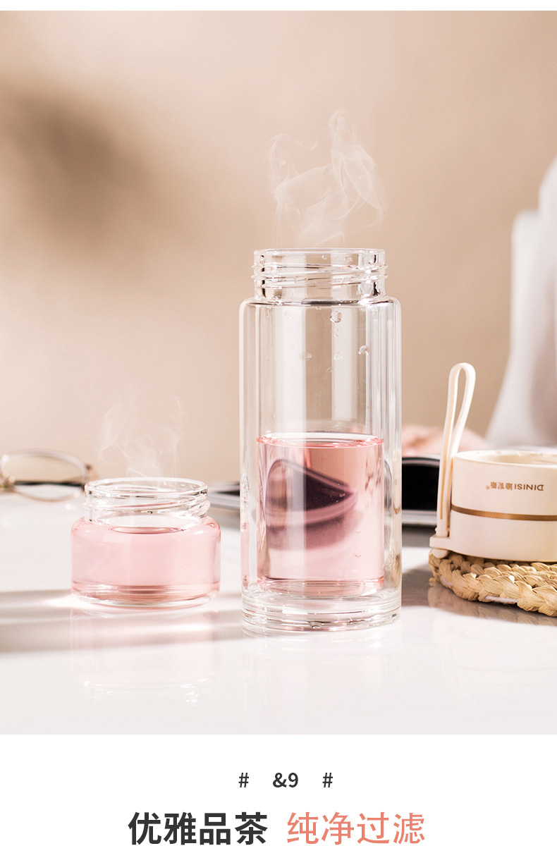선물 2 층 컵 도매 가정용 휴대용 찻잔 고색 값 물 컵 차 분리 고온 내성 유리 컵