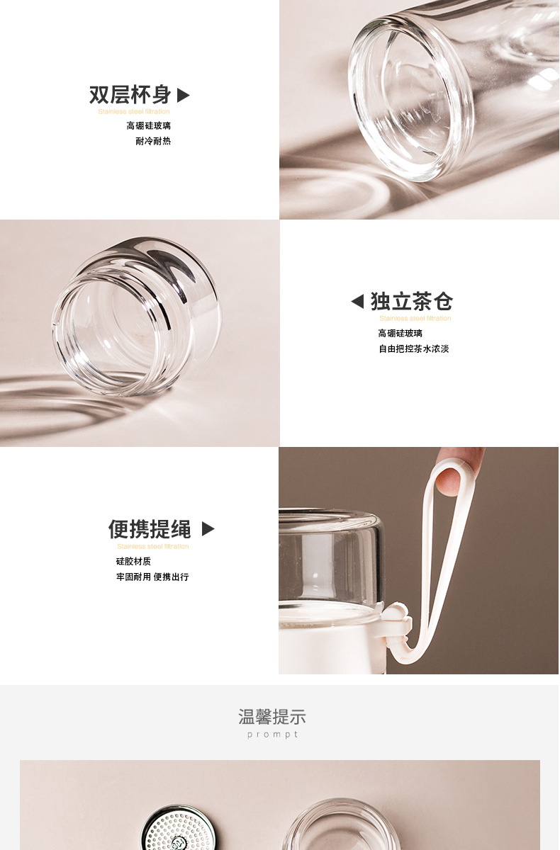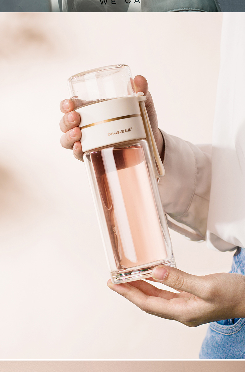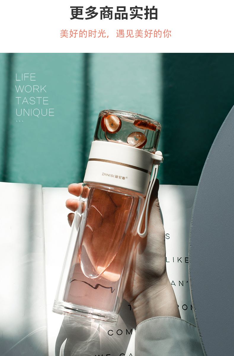 선물 2 층 컵 도매 가정용 휴대용 찻잔 고색 값 물 컵 차 분리 고온 내성 유리 컵스토어 가기