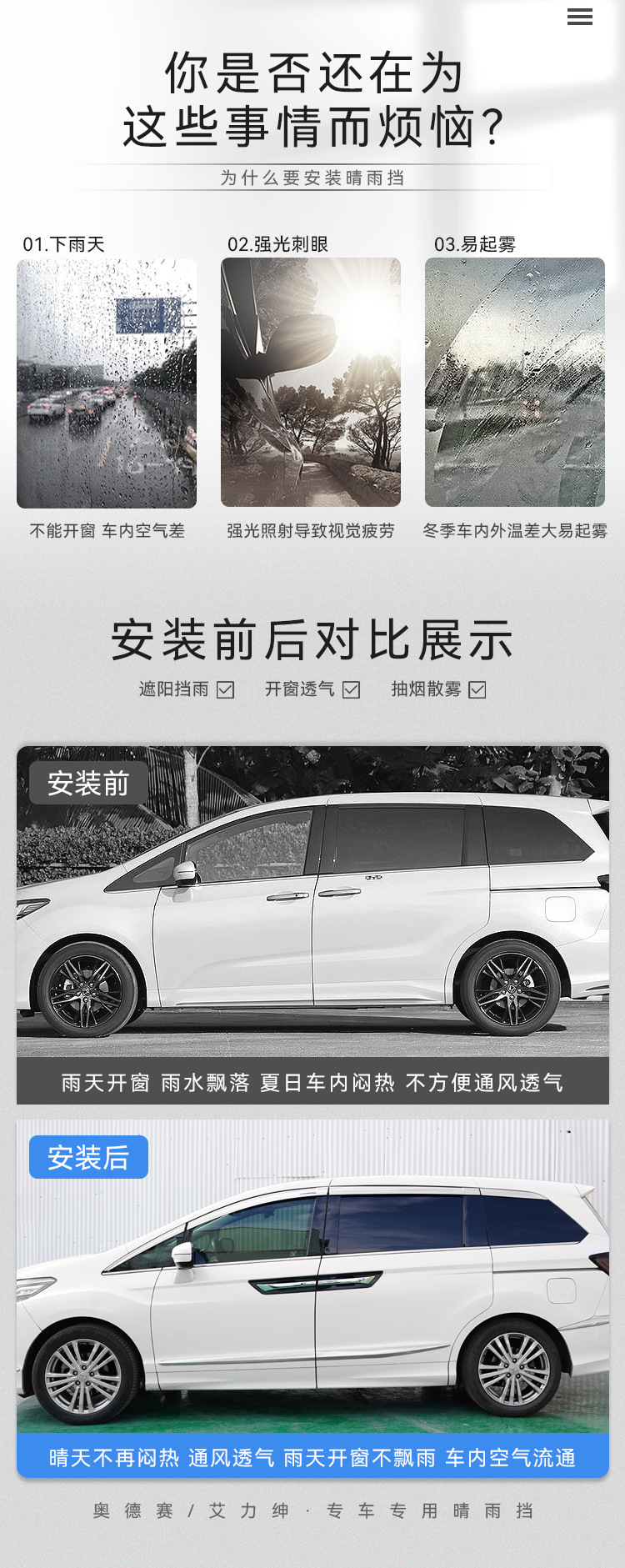 Texinrui는 혼다 오디세이 엘리슨 자동차 창 비 눈썹 비 방패 백금 레인 쉴드 자동차 부품에 적합합니다스토어 가기