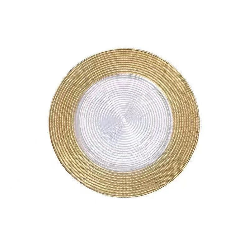 황금 다크 그린 밀짚 모자 패턴 유리 접시 가정용 호텔 유리 접시 서양식 스테이크 파스타 접시