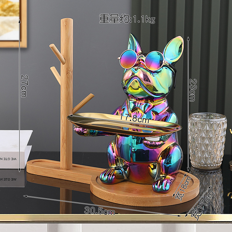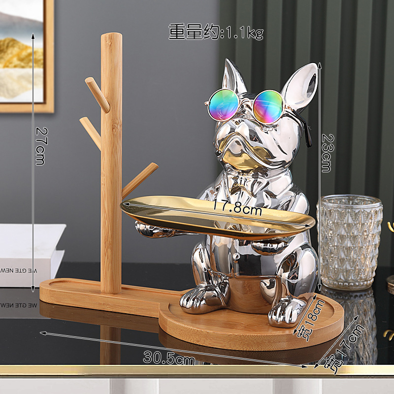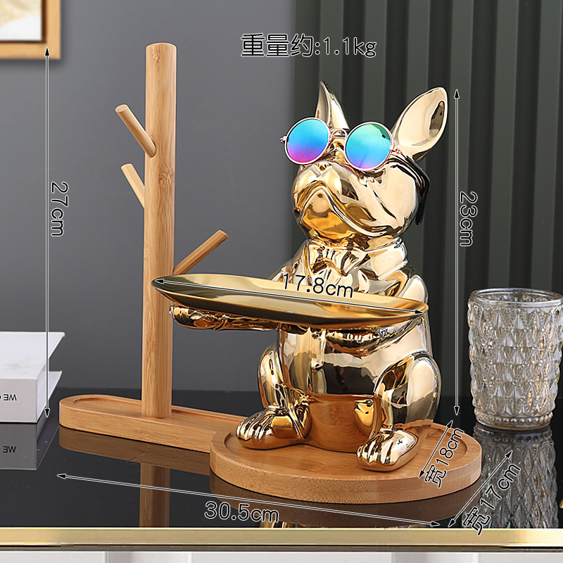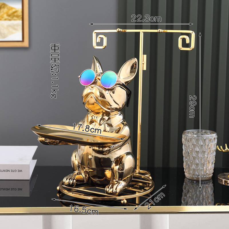 불독 개 보관 장식품, 현관 문 열쇠 트레이, 사탕 트레이, 맞춤형 가정 장식, 창의적이고 귀여운스토어 가기