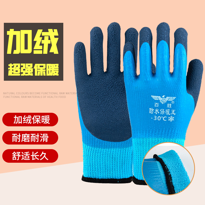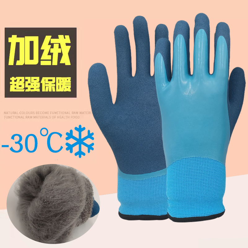 면 내한 사이트 내마모성 부동액 두꺼운 기모 겨울 테리 라텍스 담근 저온 저항 따뜻한 노동 보호 장갑스토어 가기