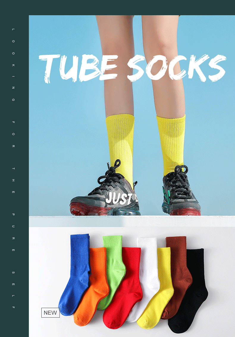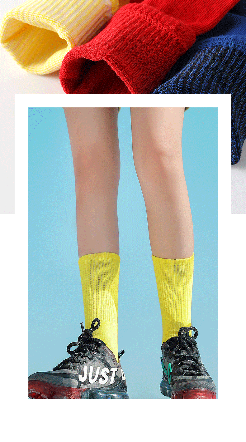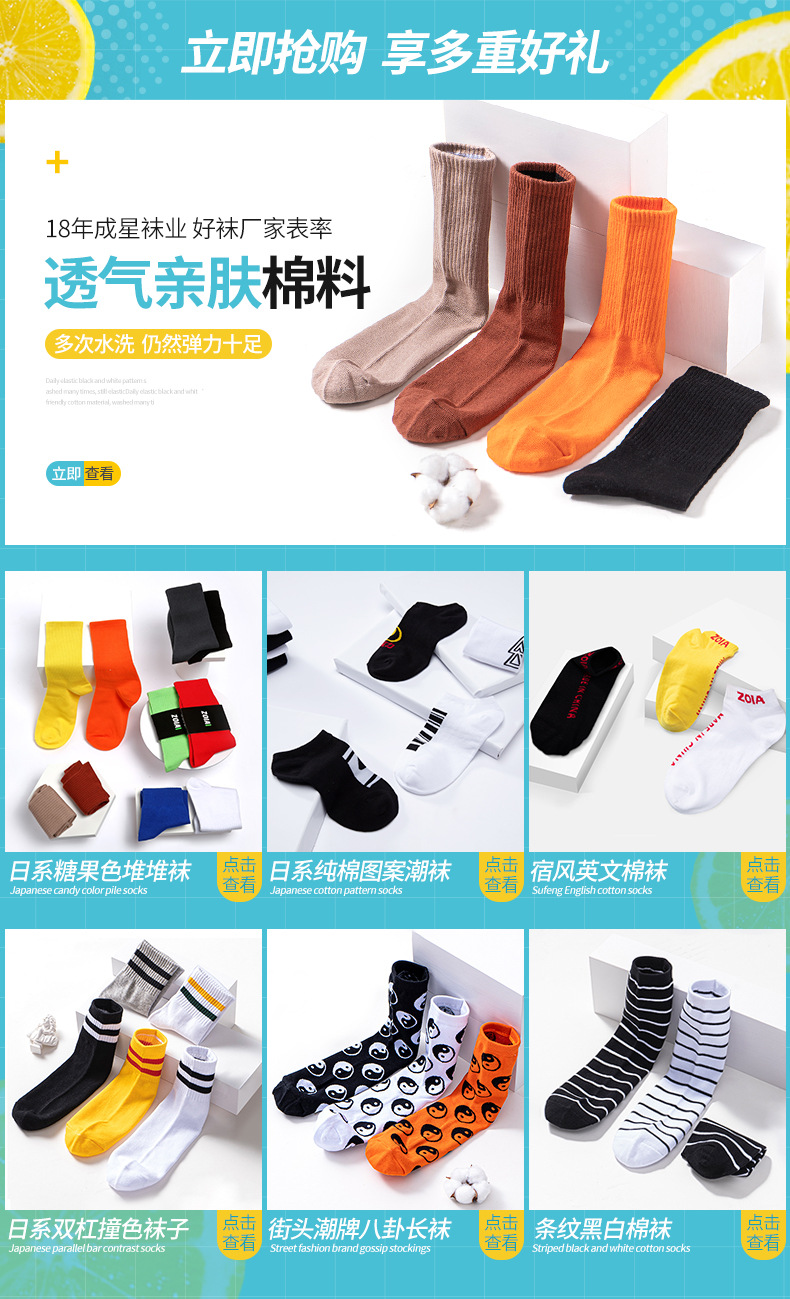 중간 두께의 양말, 가을 겨울 캔디 컬러 스포츠 롱삭스, 여성용 단색 중목 양말, 남성용 도매 캐주얼 만능 양말스토어 가기