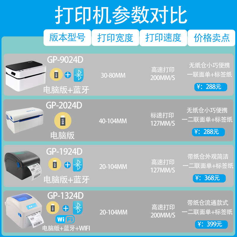 Jiabo GP1324D 블루투스 익스프레스 싱글 전자 얼굴 싱글 프린터 열 바코드 자체 접착 의류 라벨