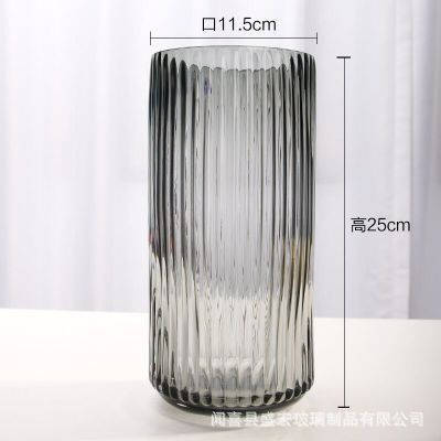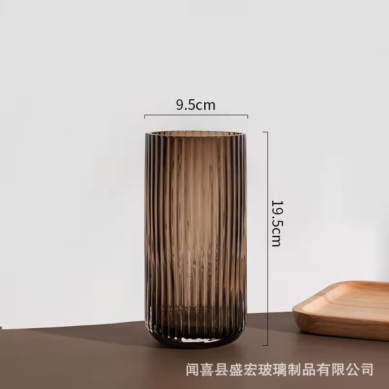 가벼운 고급 유리 꽃병 북유럽 장식품 현대 간단한 거실 꽃 꽃 장식품 가구 수직 스트레이트