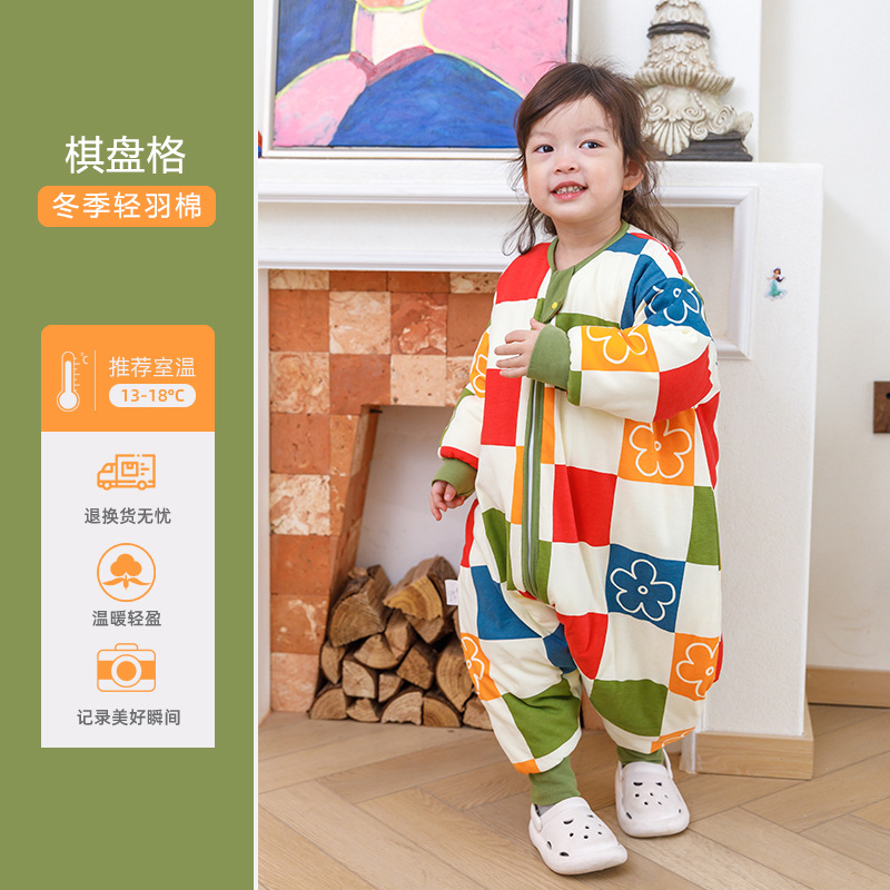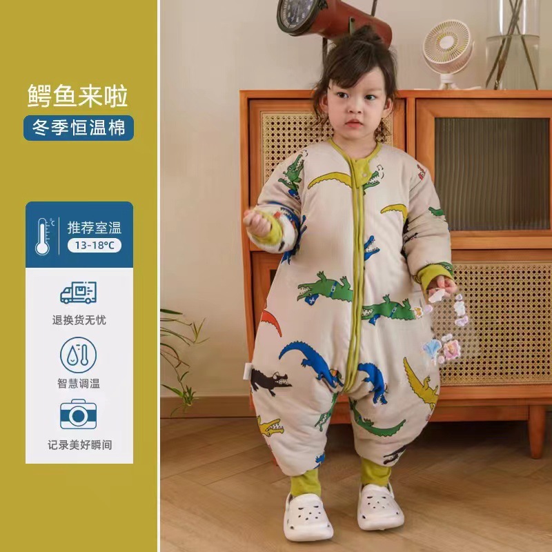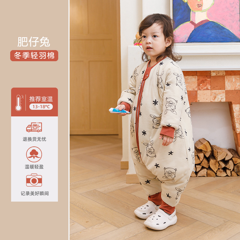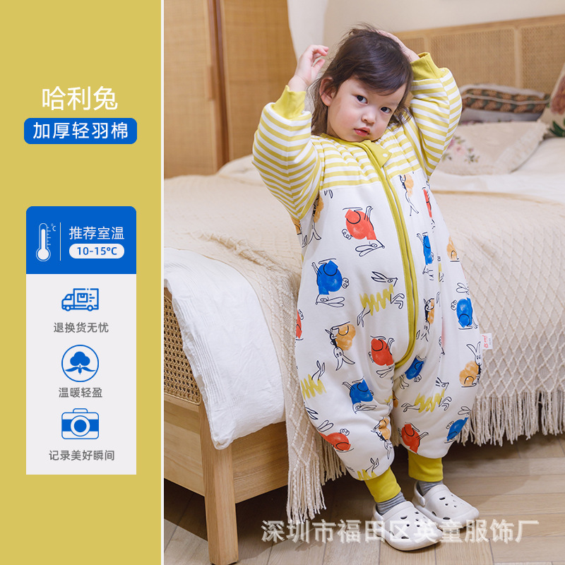 Huxibei 다리 침낭 가을과 겨울 아기 침낭 대형 어린이 잠옷 어린이 침낭 아기면 침낭 배치스토어 가기
