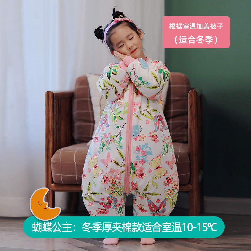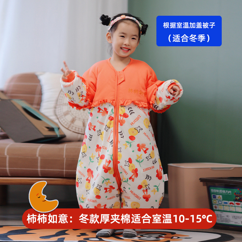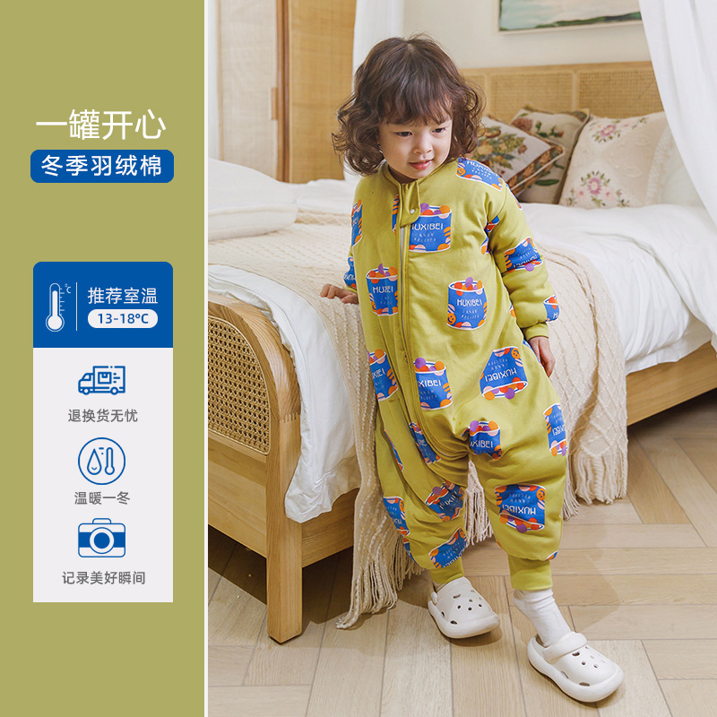 Huxibei 다리 침낭 가을과 겨울 아기 침낭 대형 어린이 잠옷 어린이 침낭 아기면 침낭 배치