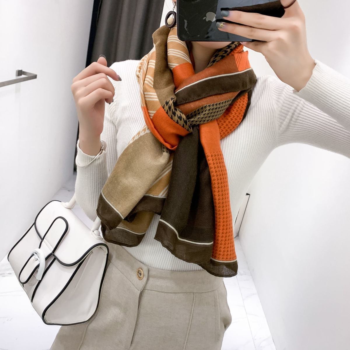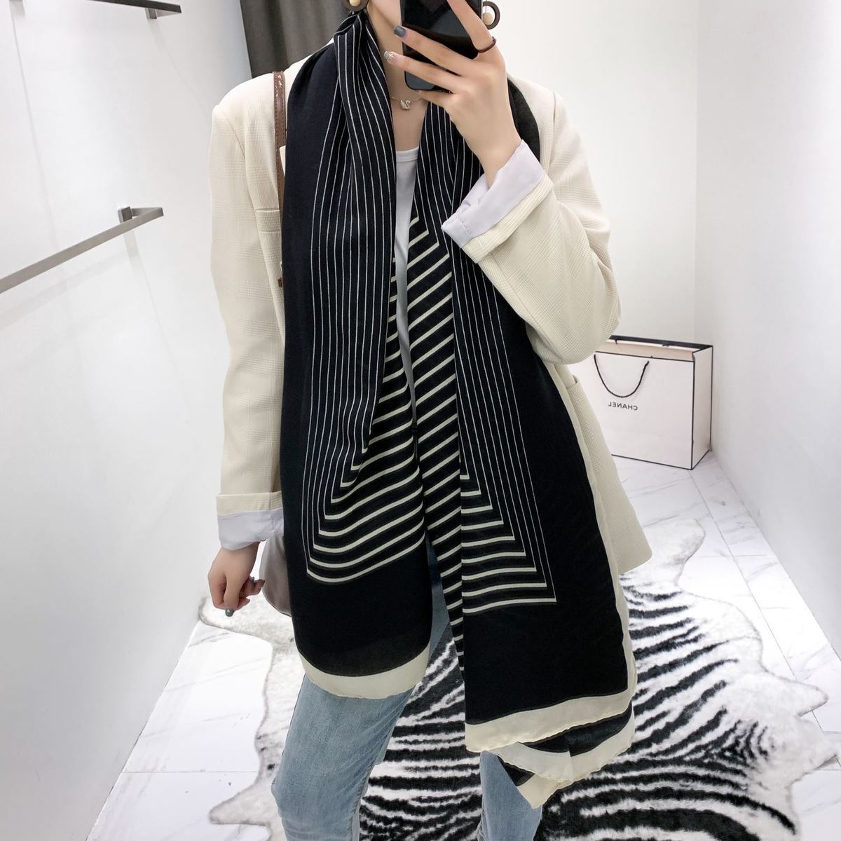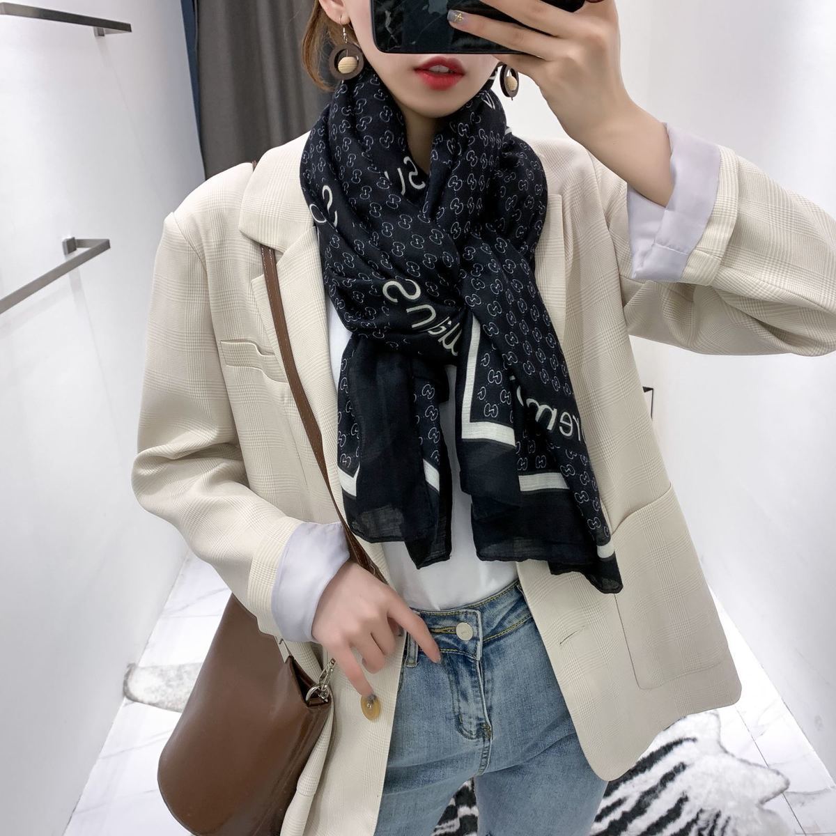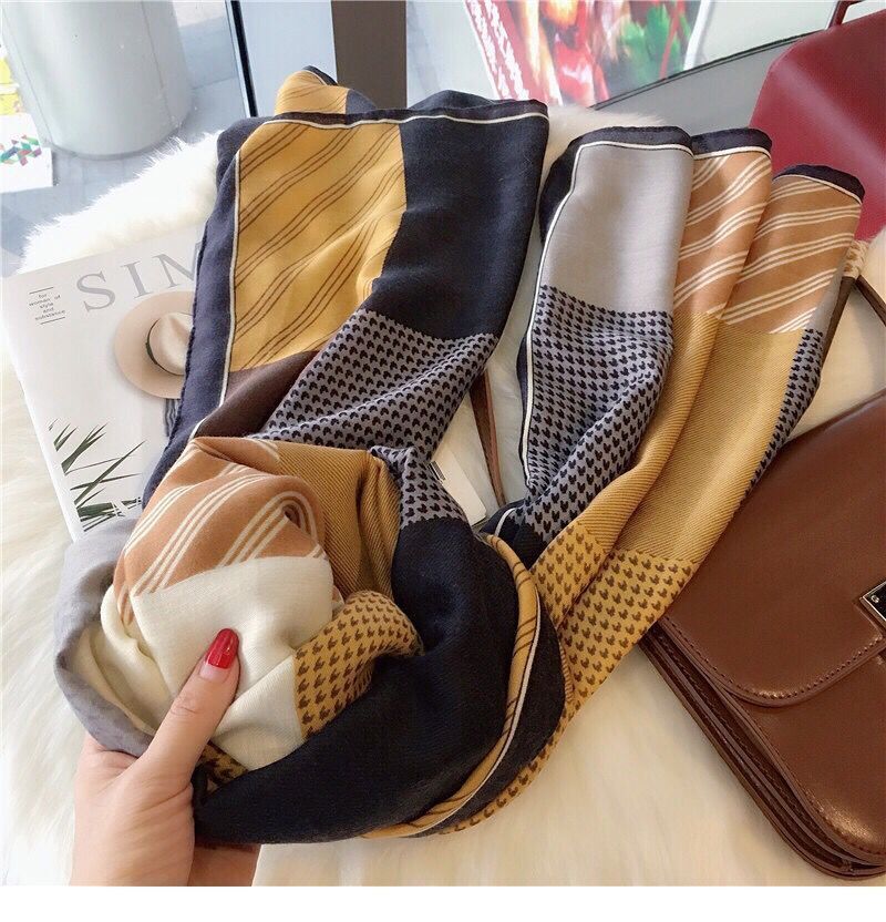 면과 린넨 스카프 여성의 가을과 겨울 새로운 한국 예술적 대비 색상 모든 일치 실크 스카프 자외선 차단제 얇은 스카프 따뜻한 숄스토어 가기