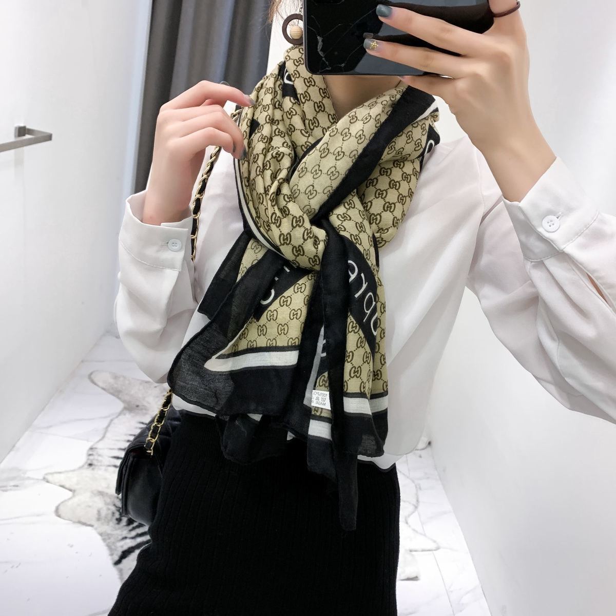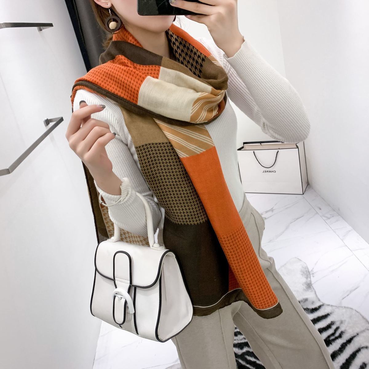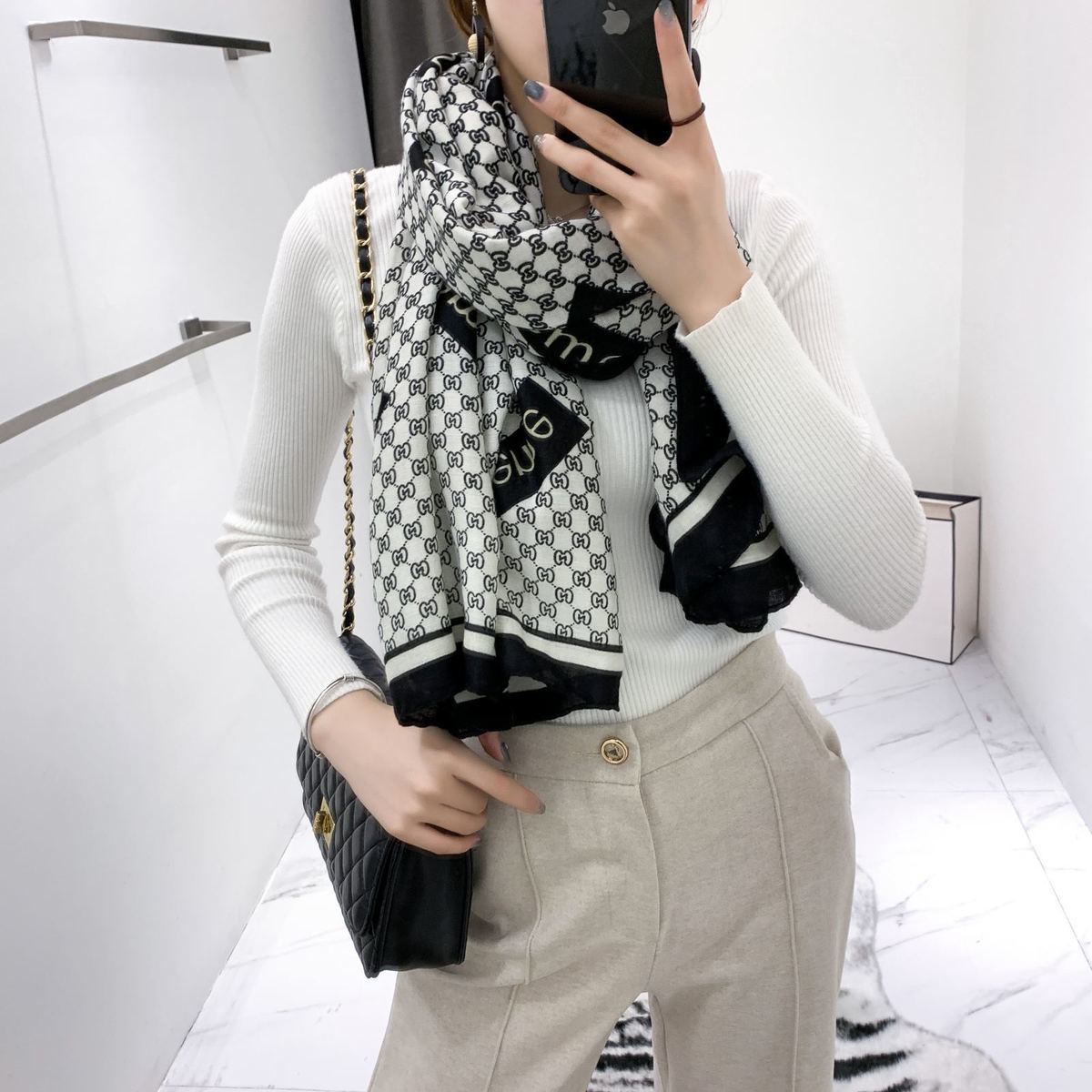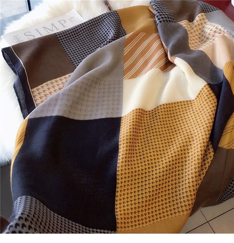 면과 린넨 스카프 여성의 가을과 겨울 새로운 한국 예술적 대비 색상 모든 일치 실크 스카프 자외선 차단제 얇은 스카프 따뜻한 숄스토어 가기