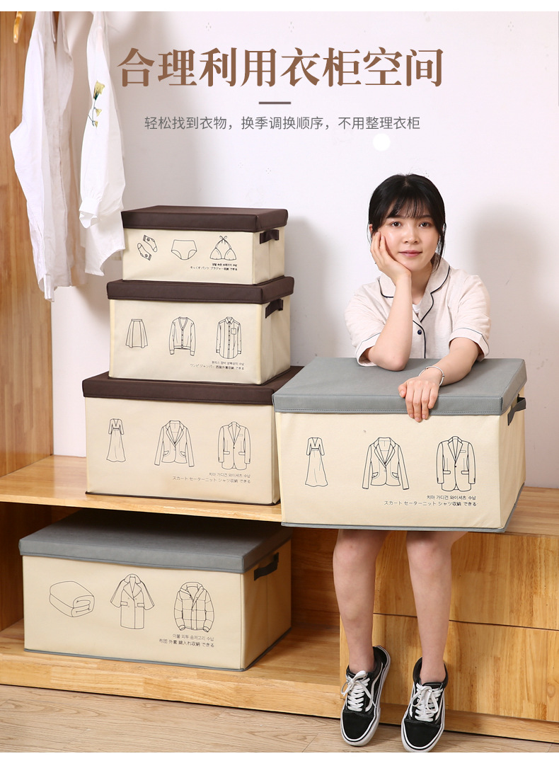 패브릭 덮개형 수납함 옷장 정리함 부직포 가정용 접이식 상자 프린트 소프트 수납함 휴대용