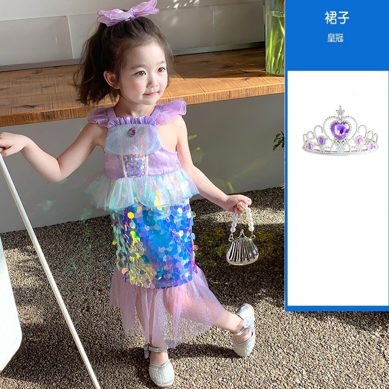• 인어 보라색 공주 드레스 + 무료 왕관