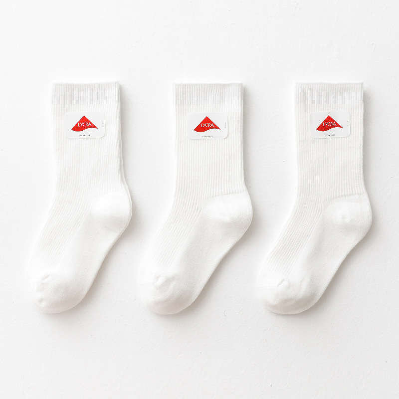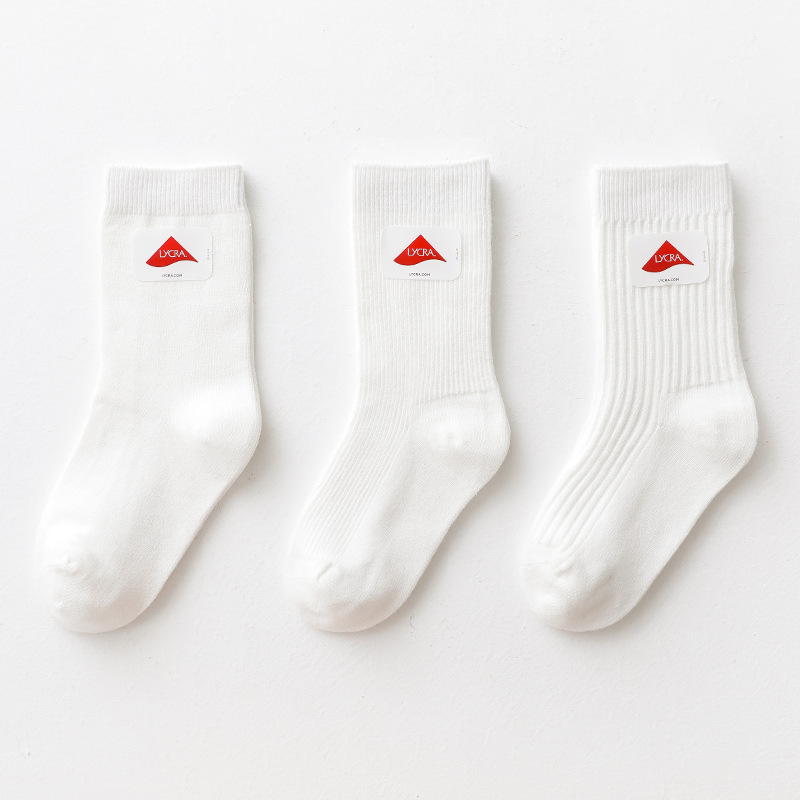 가을과 겨울 새로운 어린이 양말 순수한 흰색 학생 양말 면화 소년과 소녀 이중 바늘 양말 어린이 양말 제조 업체 도매