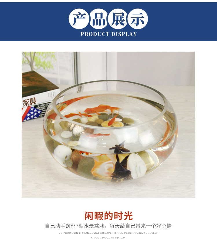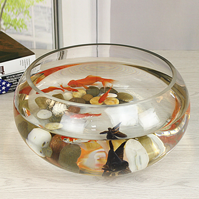 물고기 탱크 투명 유리 사무실 책상 창조적 인 수경 원형 작은 거북이 미니 데스크탑 작은 물고기 탱크