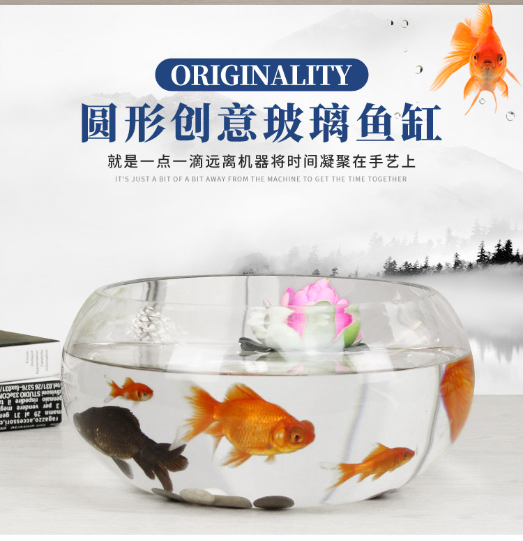 물고기 탱크 투명 유리 사무실 책상 창조적 인 수경 원형 작은 거북이 미니 데스크탑 작은 물고기 탱크스토어 가기
