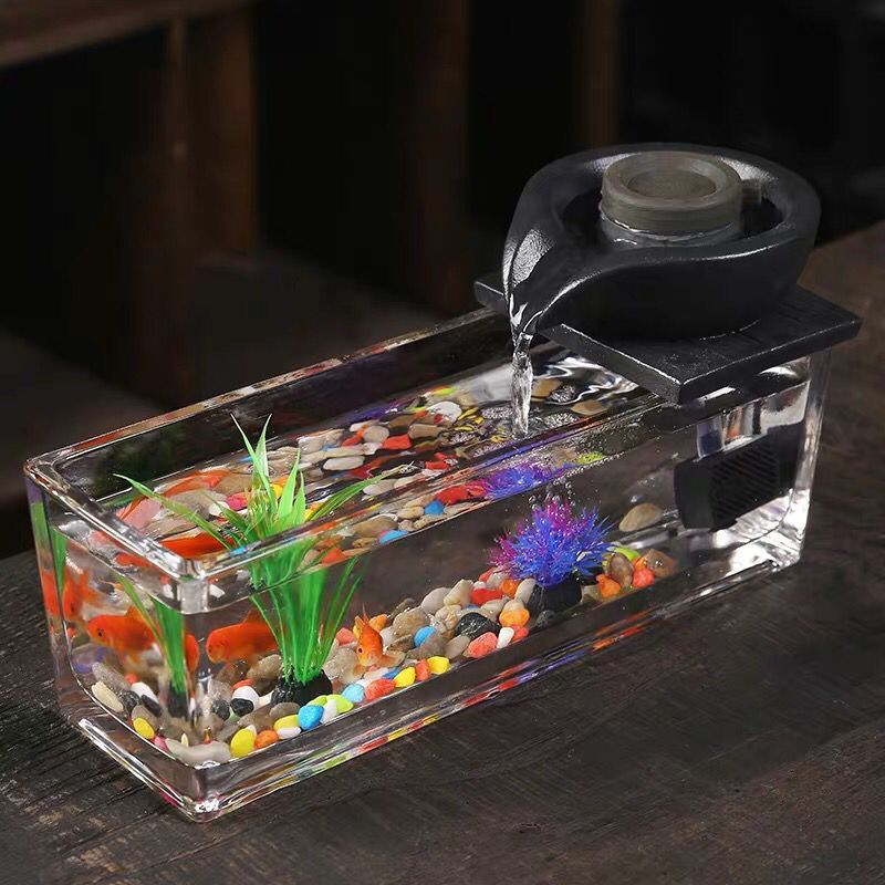 창조적 인 중국식 바위 유수 분수 장식품 거실 사무실 작은 유수 어항 행운의 데스크탑 풍경스토어 가기