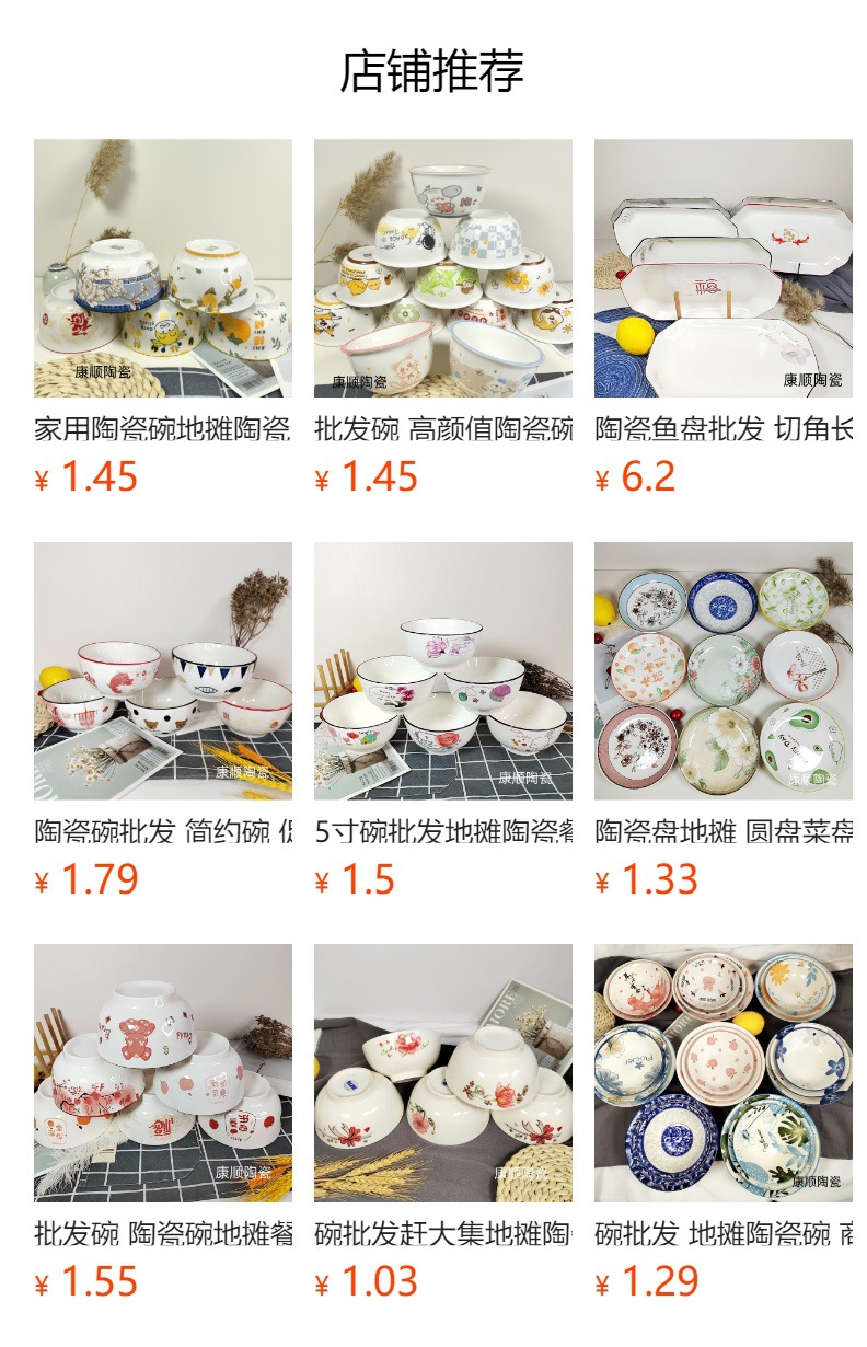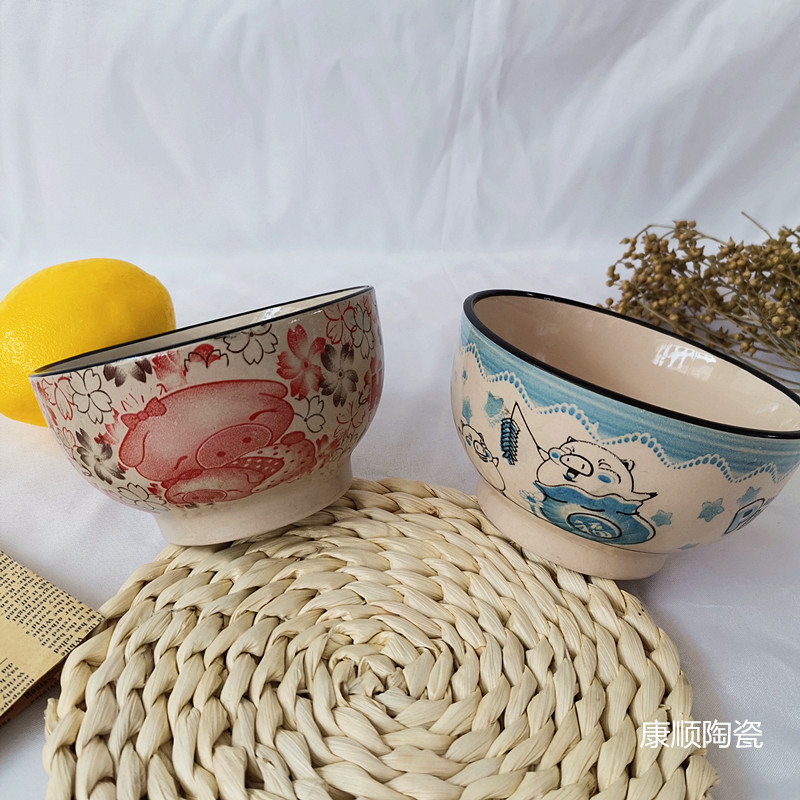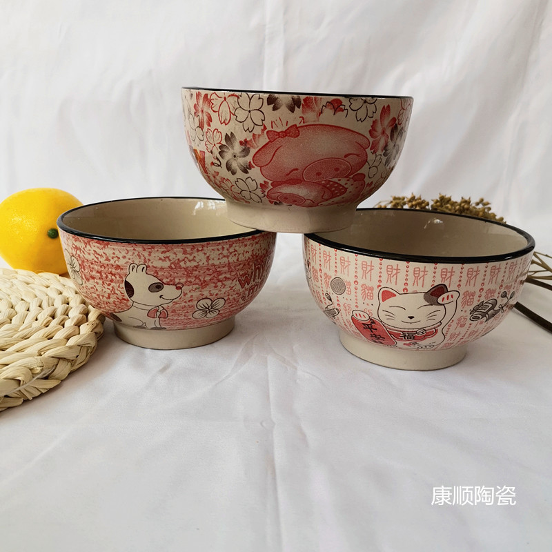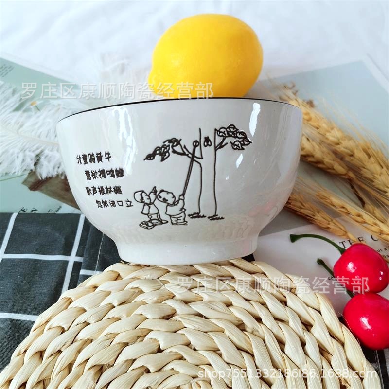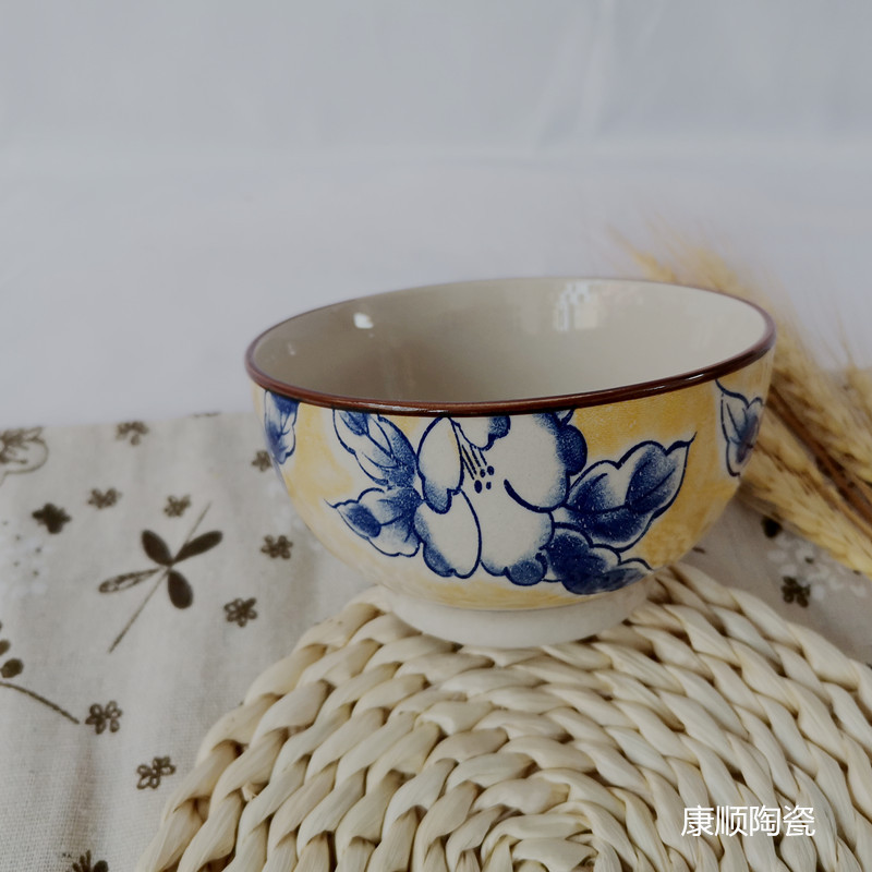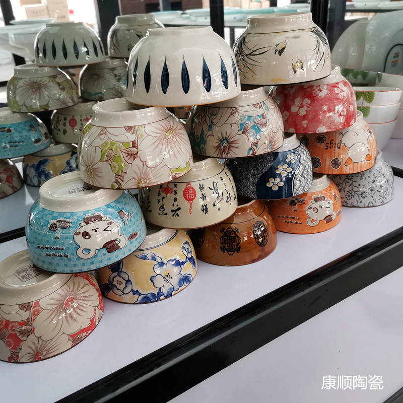 노점 소 그릇 도매 데일리 식기 중국식 큰 발 그릇 가정용 그릇 4.5 인치 그릇 세라믹 작은 그릇스토어 가기
