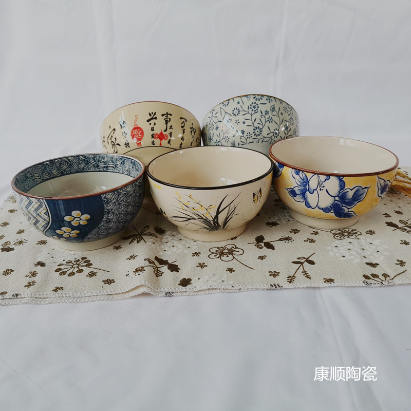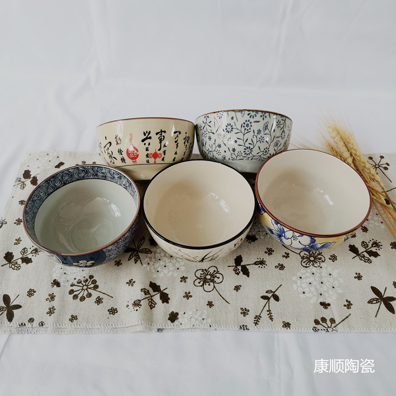 노점 소 그릇 도매 데일리 식기 중국식 큰 발 그릇 가정용 그릇 4.5 인치 그릇 세라믹 작은 그릇