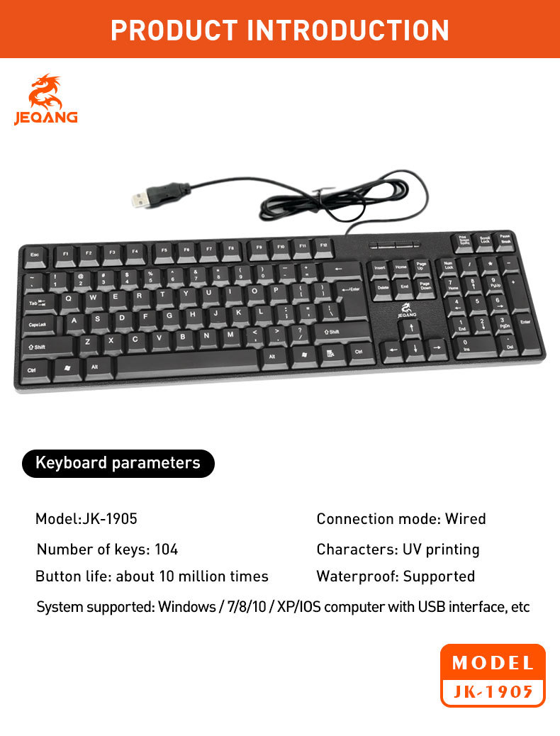 공장 직판 905 유선 키보드 마우스 세트 스페인어 영어 사무용 노트북 데스크탑 방수 디자인
