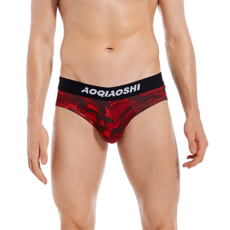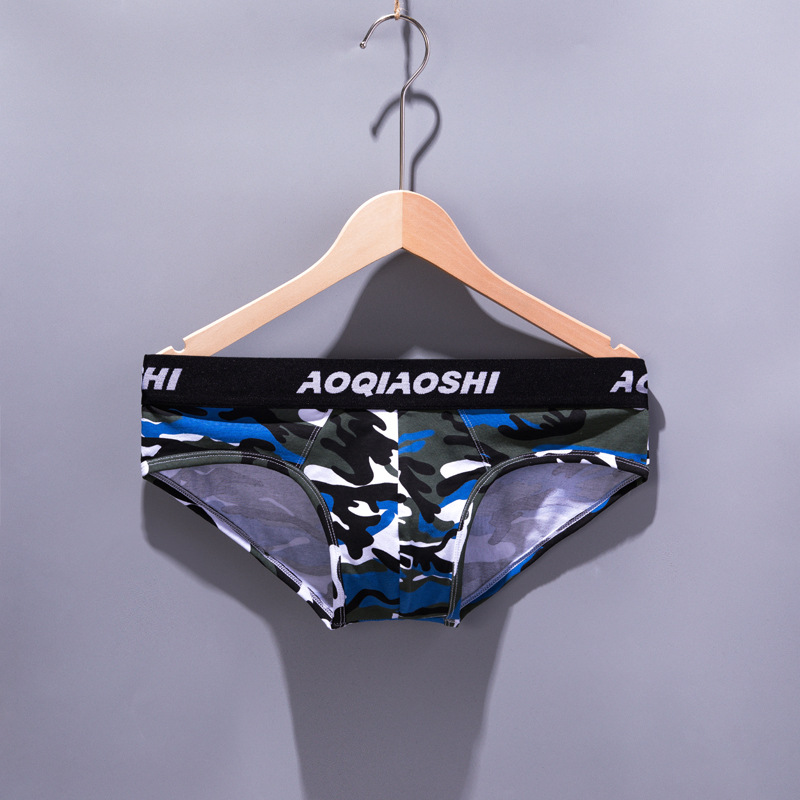 새로운 남성 속옷, 고급 면 위장 프린트, 이중 레이어 U-볼륨 대형 포켓, 통기성, 섹시한 로우라이즈 팬티