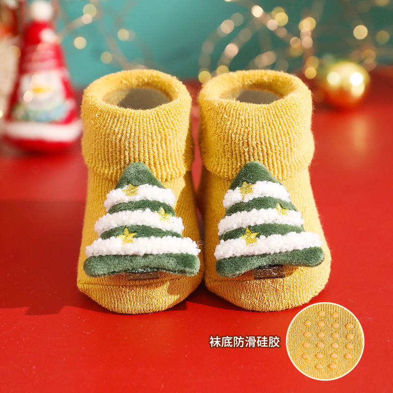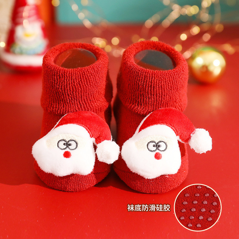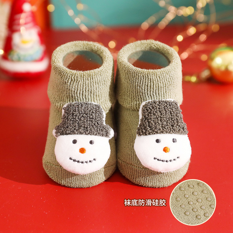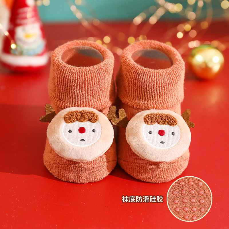 21 가을과 겨울 테리 두꺼운 아기 양말 미끄럼 방지 아기 바닥 양말 어린이 크리스마스 양말 신생아 만화 인형