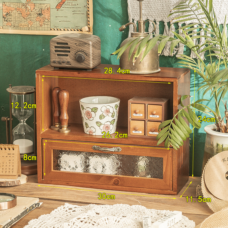 데스크탑 스토리지 박스 사무실 책상 zakka 캐비닛 서랍 스타일 빈티지 컵 화장품 선반 테이블 나무