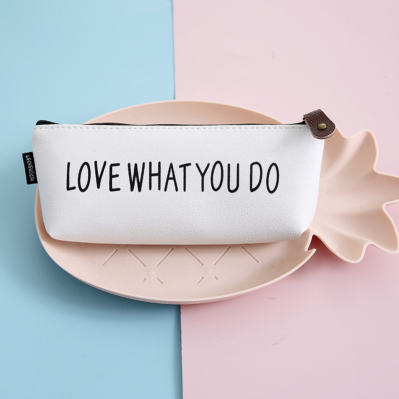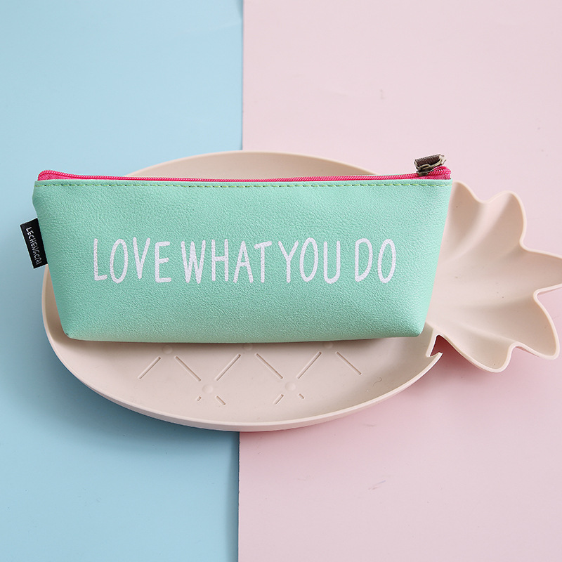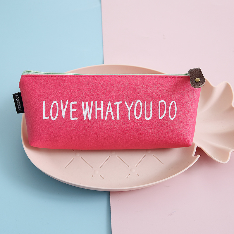 크로스 보더 폭발 사랑 내 사랑 연필 가방 단색 작은 신선한 대용량 Pu 가죽 문구 가방 간단한 삼각형 연필 가방스토어 가기