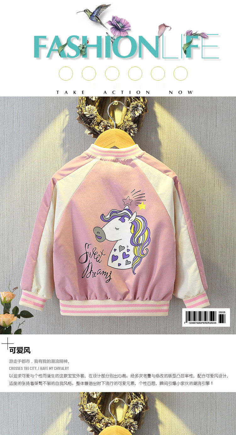 여자 만화 코트 야구 세트 3 세 어린이 서양 스타일 2 아기 소녀 2024 새로운 소녀의 봄 재킷