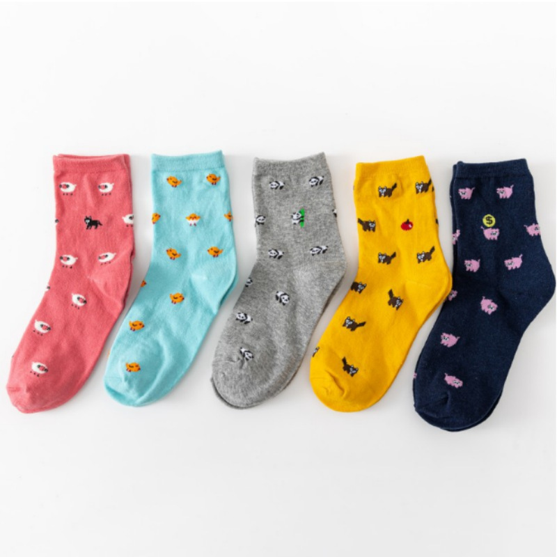 가을과 겨울 숙녀 만화 튜브 양말 면화 여성 양말 패션 캔디 컬러 양말 도매