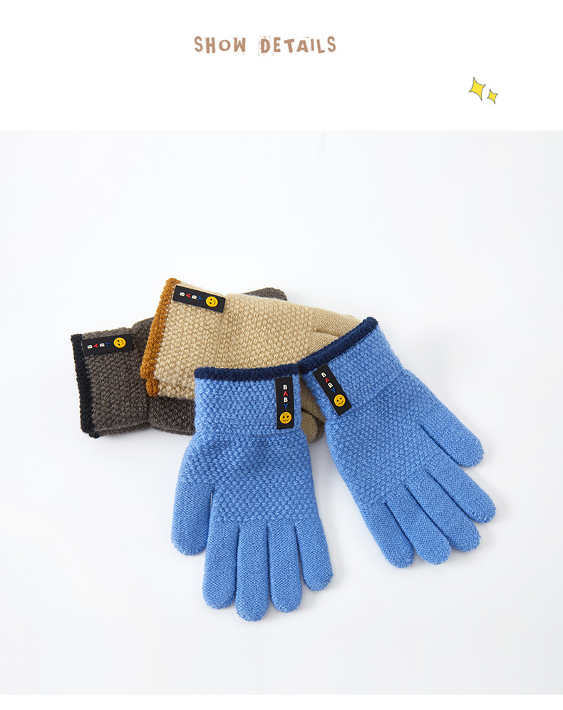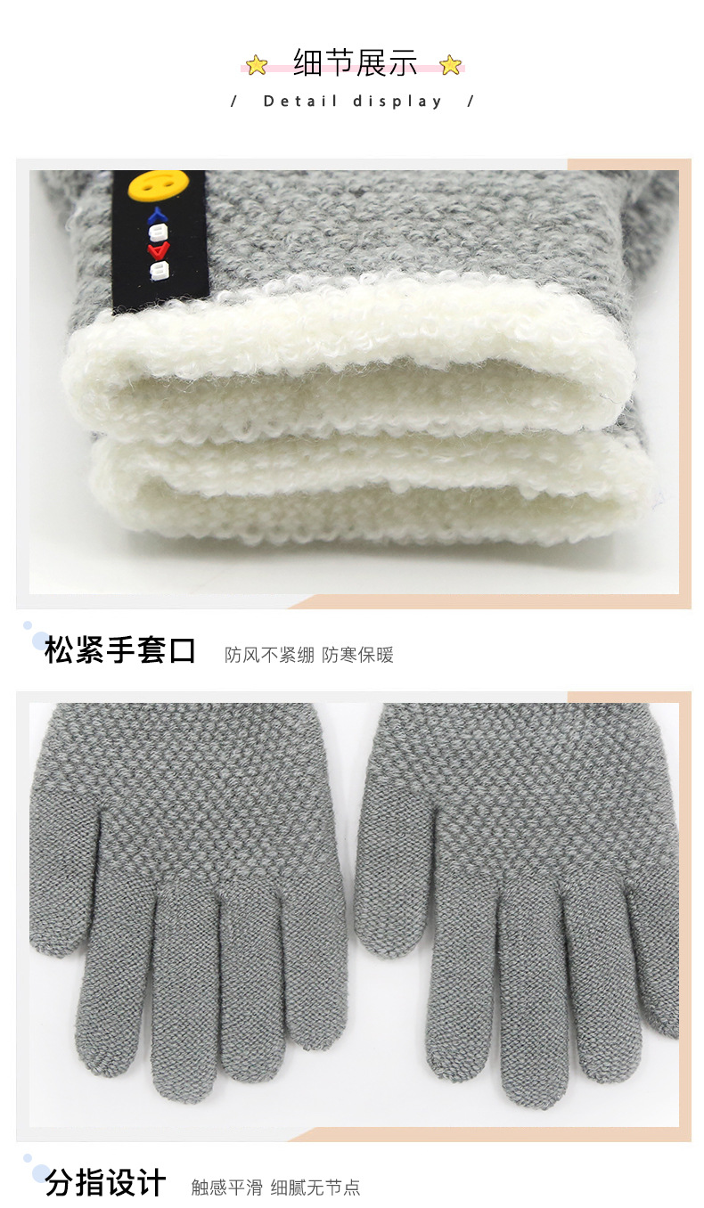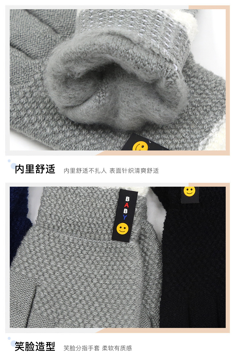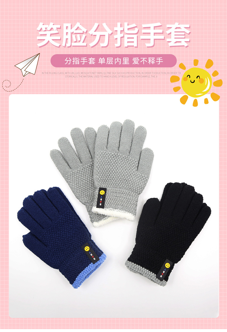 가을, 겨울 스포츠 초등학생 다섯 손가락 따뜻한 양모 웃는 얼굴 분할 손가락 국경 간 도매 6-10 세 어린이 장갑스토어 가기