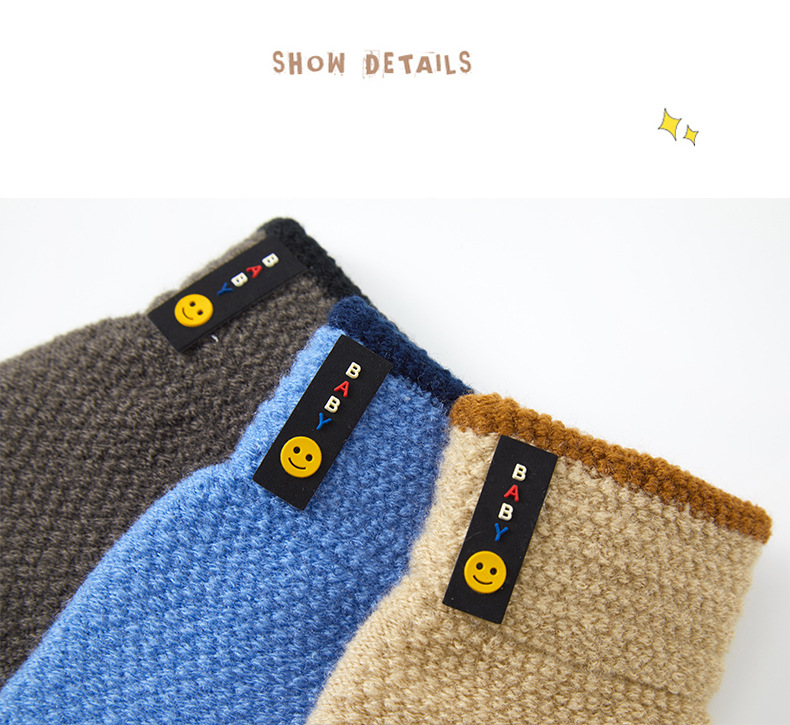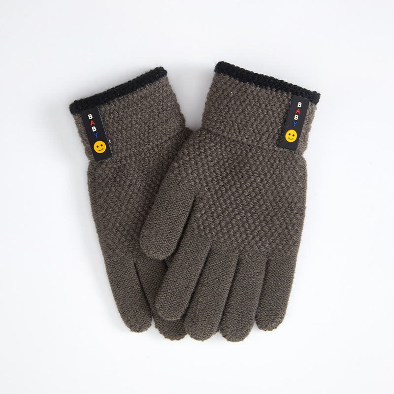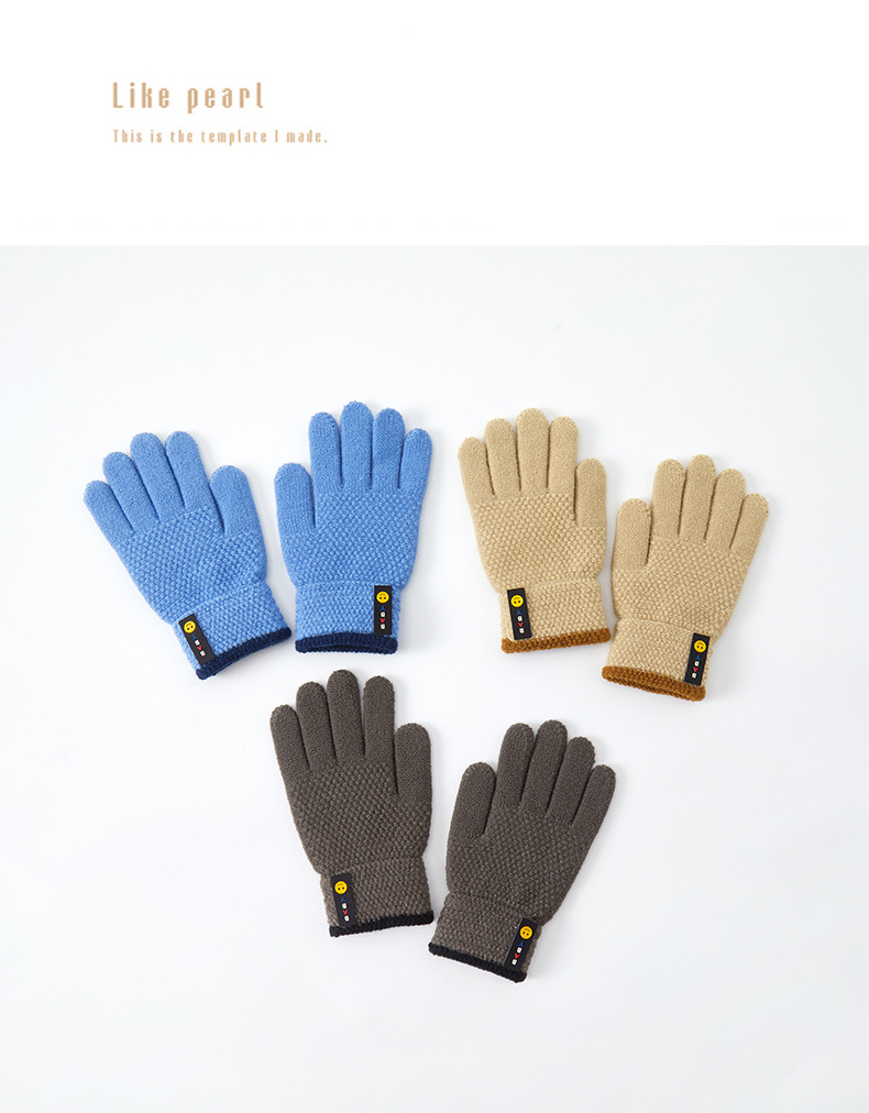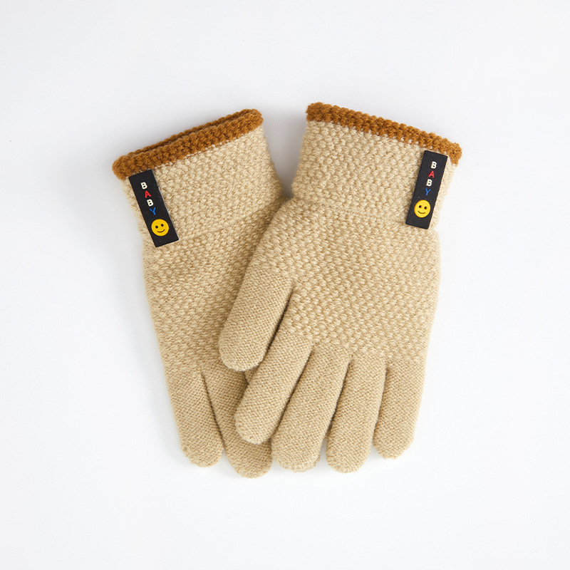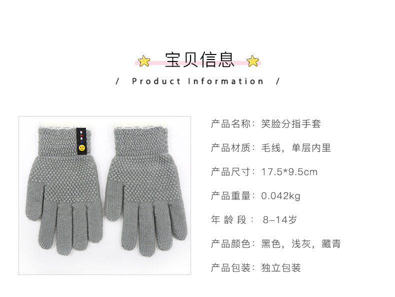 가을, 겨울 스포츠 초등학생 다섯 손가락 따뜻한 양모 웃는 얼굴 분할 손가락 국경 간 도매 6-10 세 어린이 장갑스토어 가기