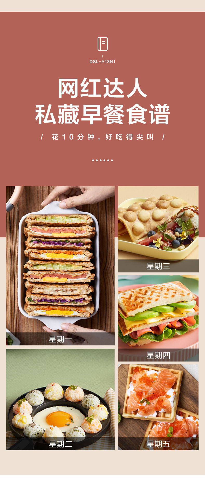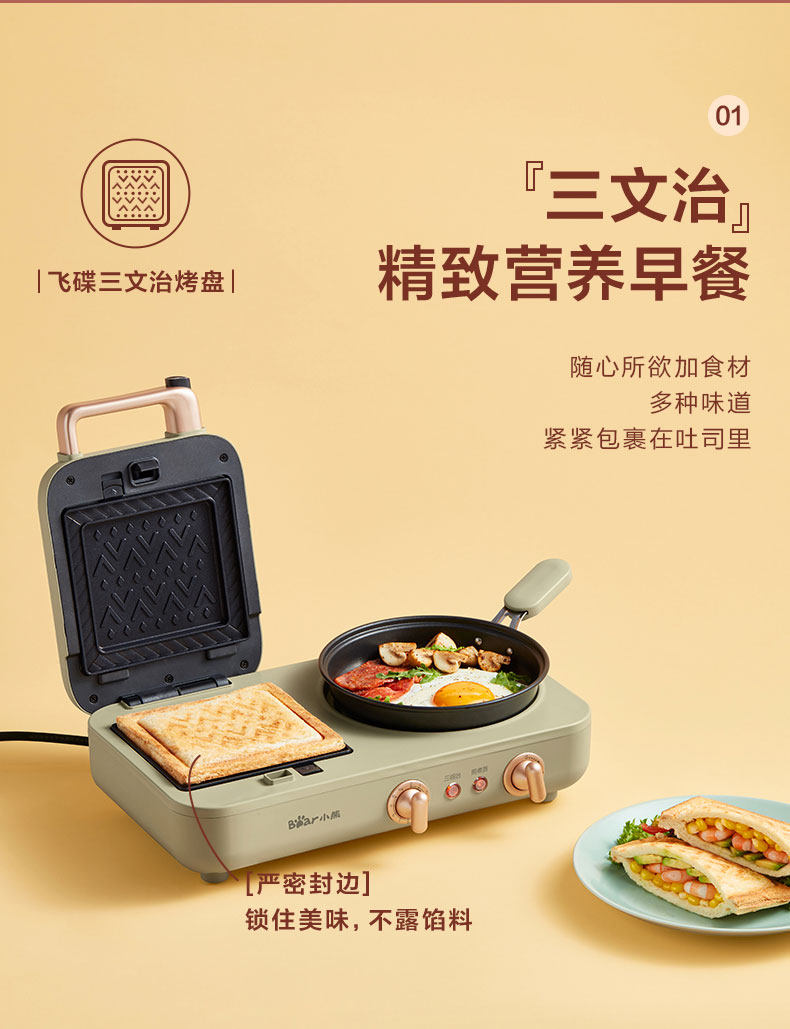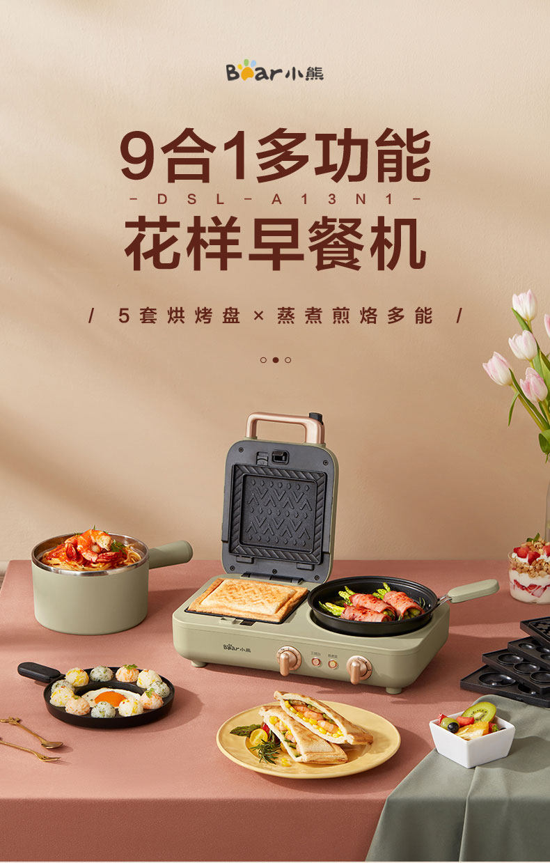 곰 샌드위치 기계 아침 식사 기계 DSL-A13N1 가정용 소형 가벼운 음식 기계 다기능 게으른 토스트 프레스 로스트