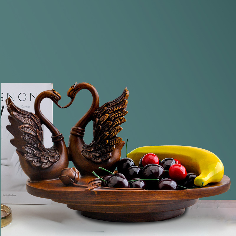 【产品名称】:创意款果盘摆件 美式酒柜装饰树脂天鹅果盘收纳盒 仿木天鹅工艺品摆件