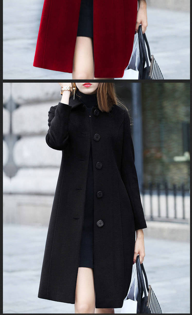 모직 코트 여자의 2023 봄 새로운 햅번 스타일 플러스 사이즈 슬림핏 슬리밍 중간 길이 모직 코트 세트스토어 가기
