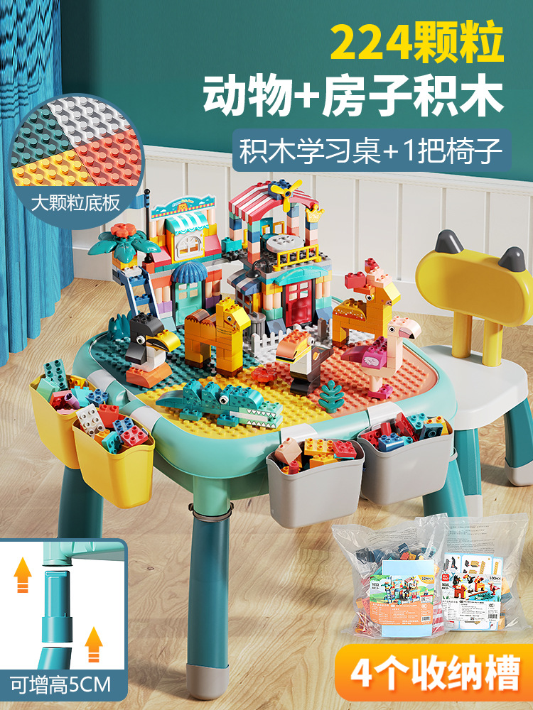 • 높은 대형 입자 테이블 + 의자 1 개 + 입자 동물 집 빌딩 블록 224 개