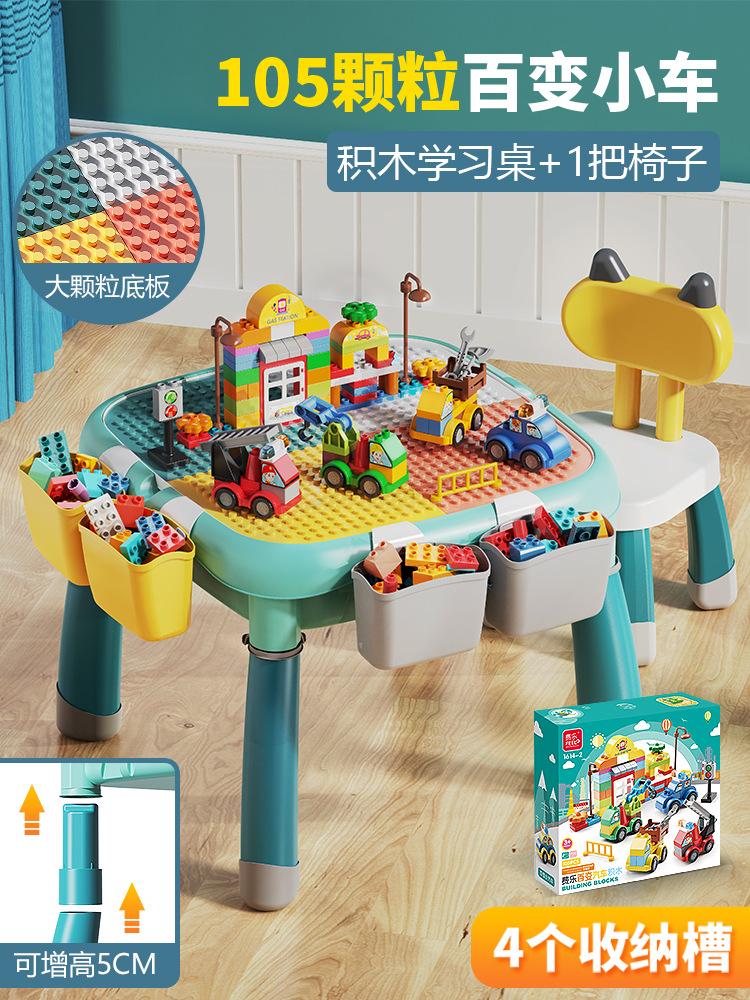 • 대형 입자 빌딩 블록 테이블 + 1 의자 + 105 입자 가변 자동차를 증가시킬 수 있습니다