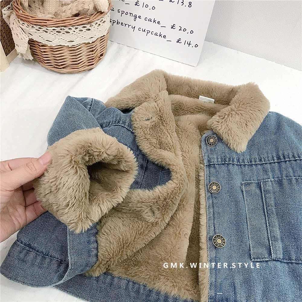 아동용 기모 안감 데님 재킷, 세련된 2025 겨울 신상 여아용 한국 스타일 데님 코트, 유아용 트렌디 상의스토어 가기