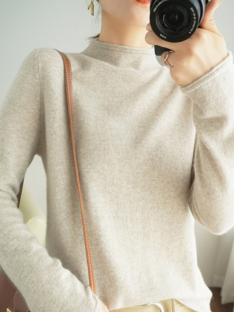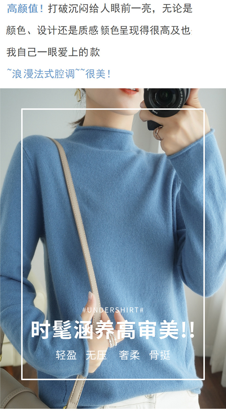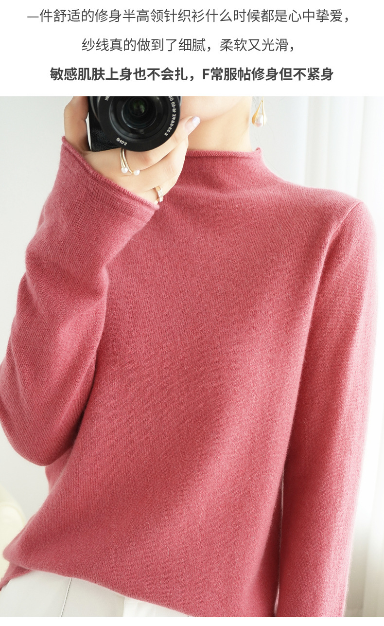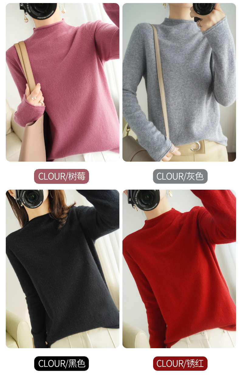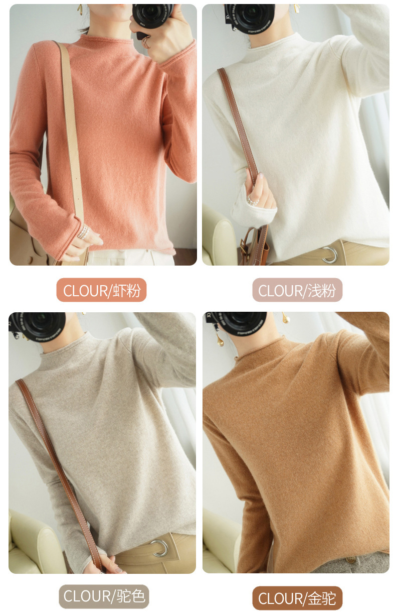 양모 하프 터틀넥 2025 가을 겨울 신상 여성용 짧은 풀오버 한국 스타일 슬림 니트 베이스 셔츠 스웨터스토어 가기