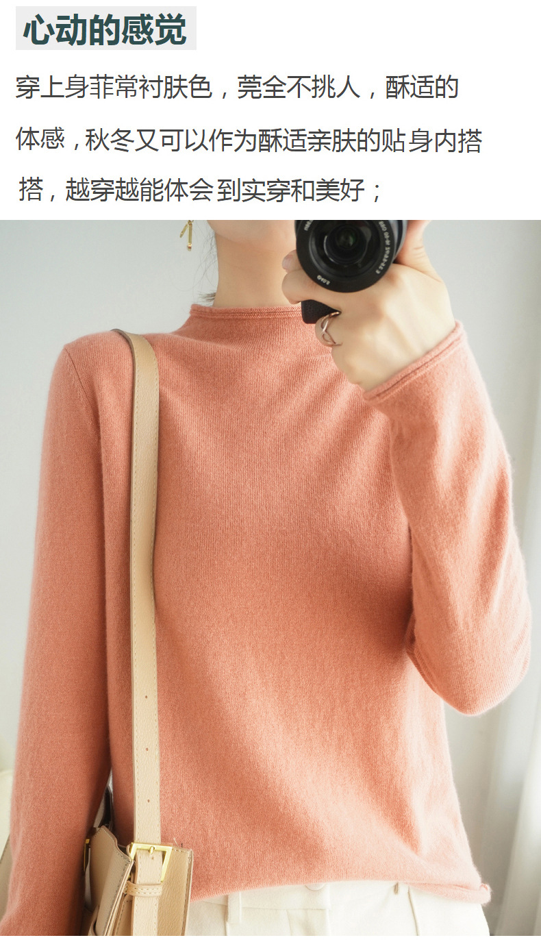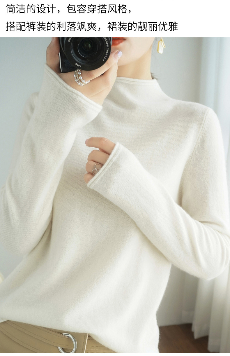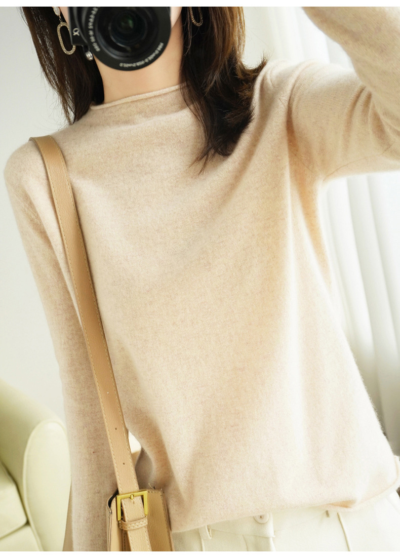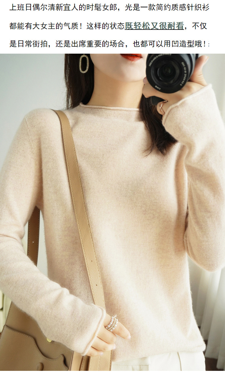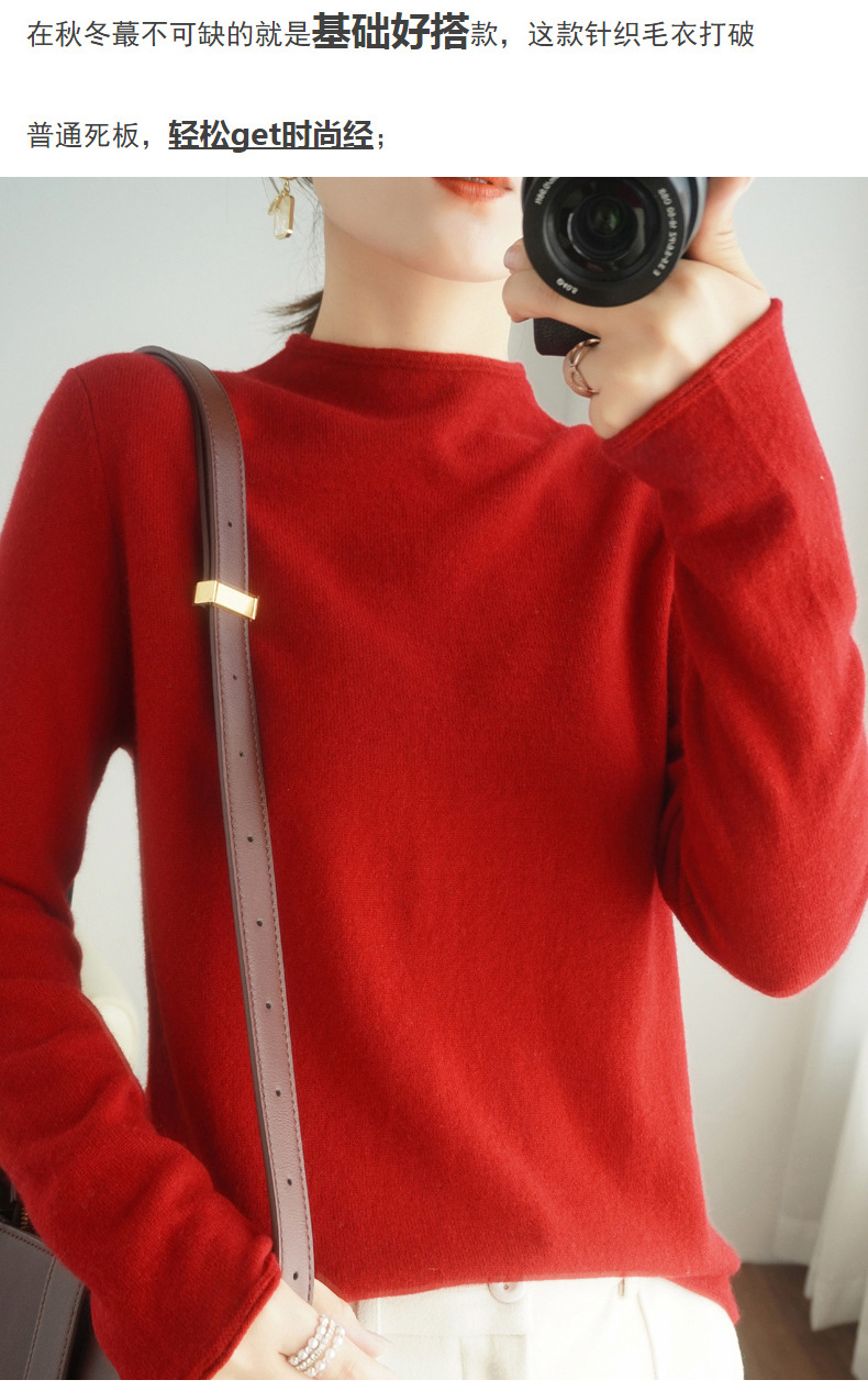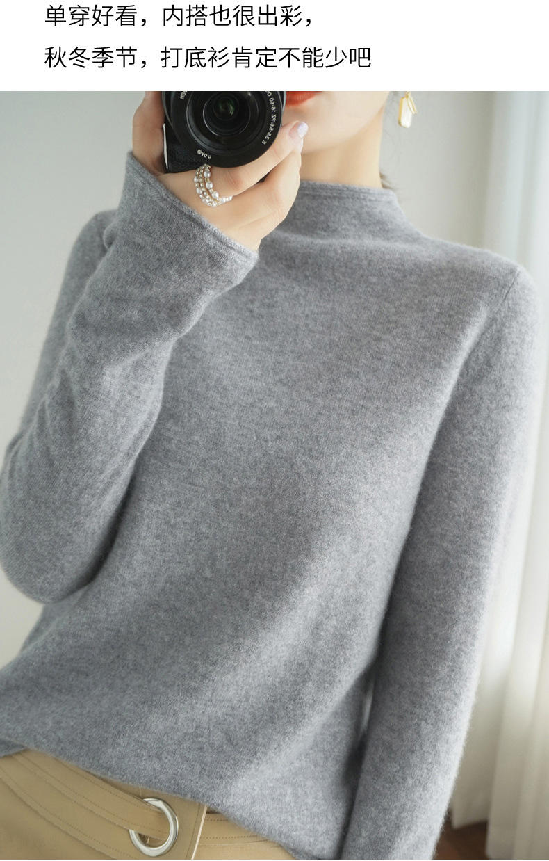 양모 하프 터틀넥 2025 가을 겨울 신상 여성용 짧은 풀오버 한국 스타일 슬림 니트 베이스 셔츠 스웨터스토어 가기