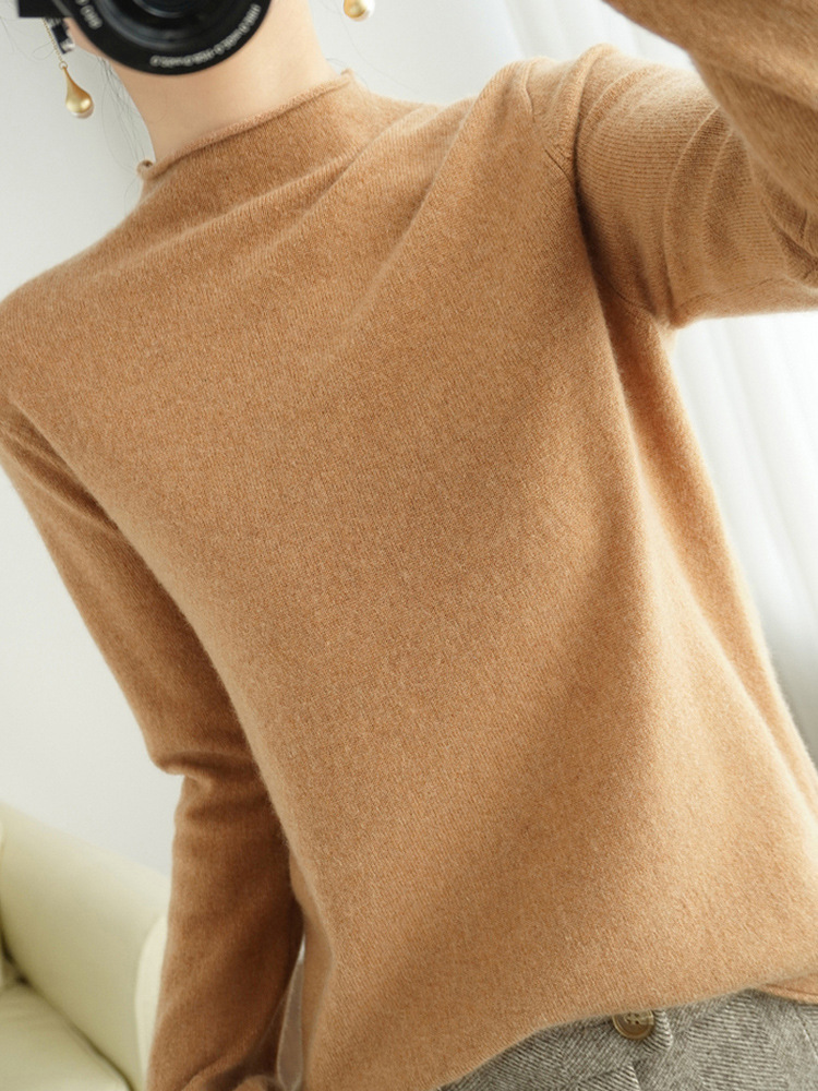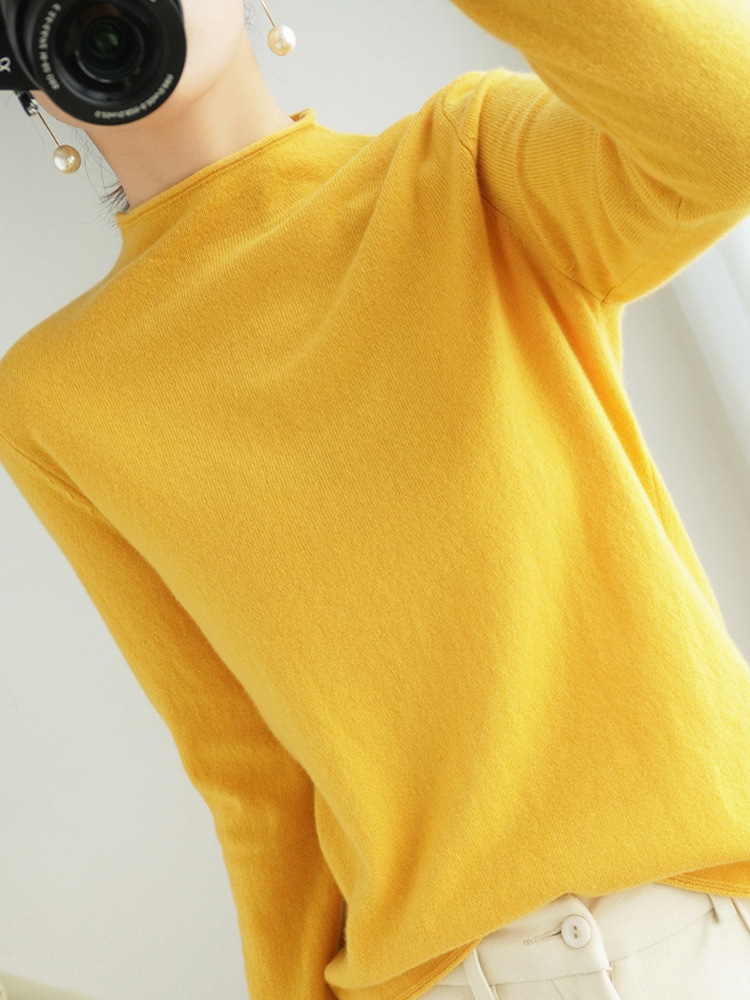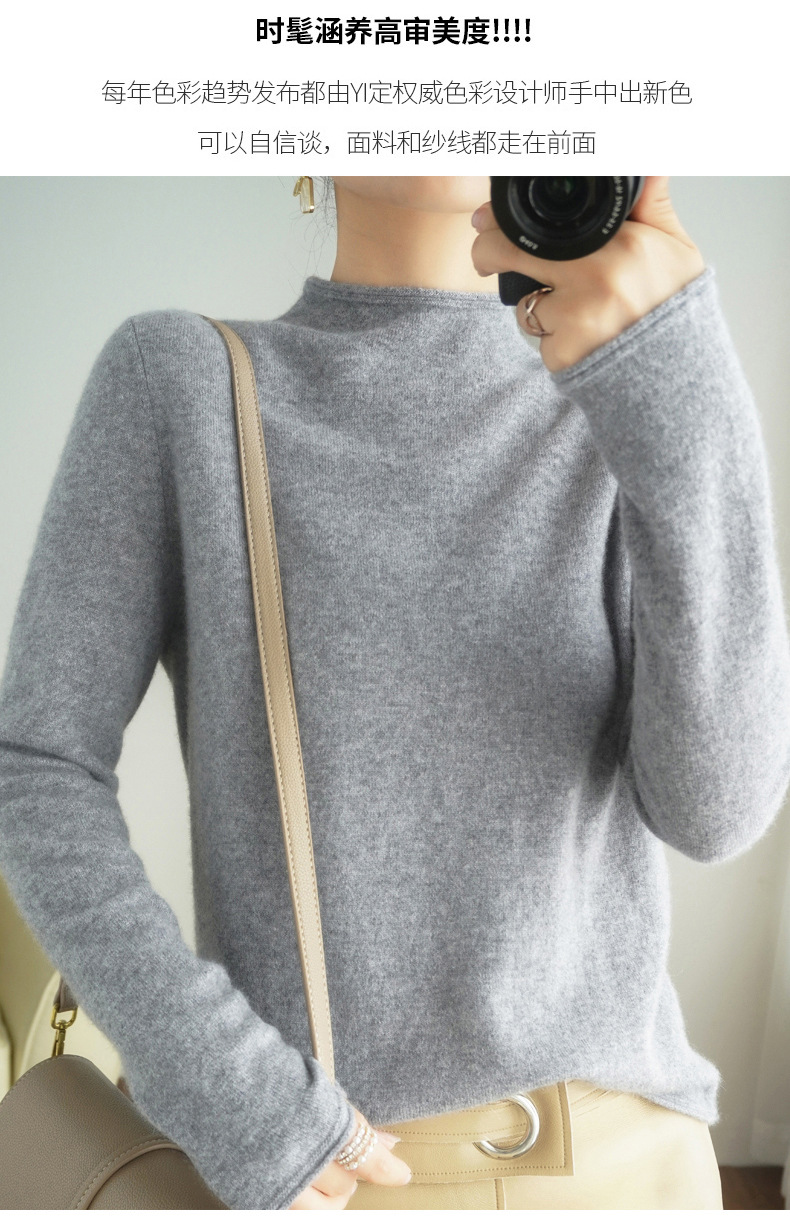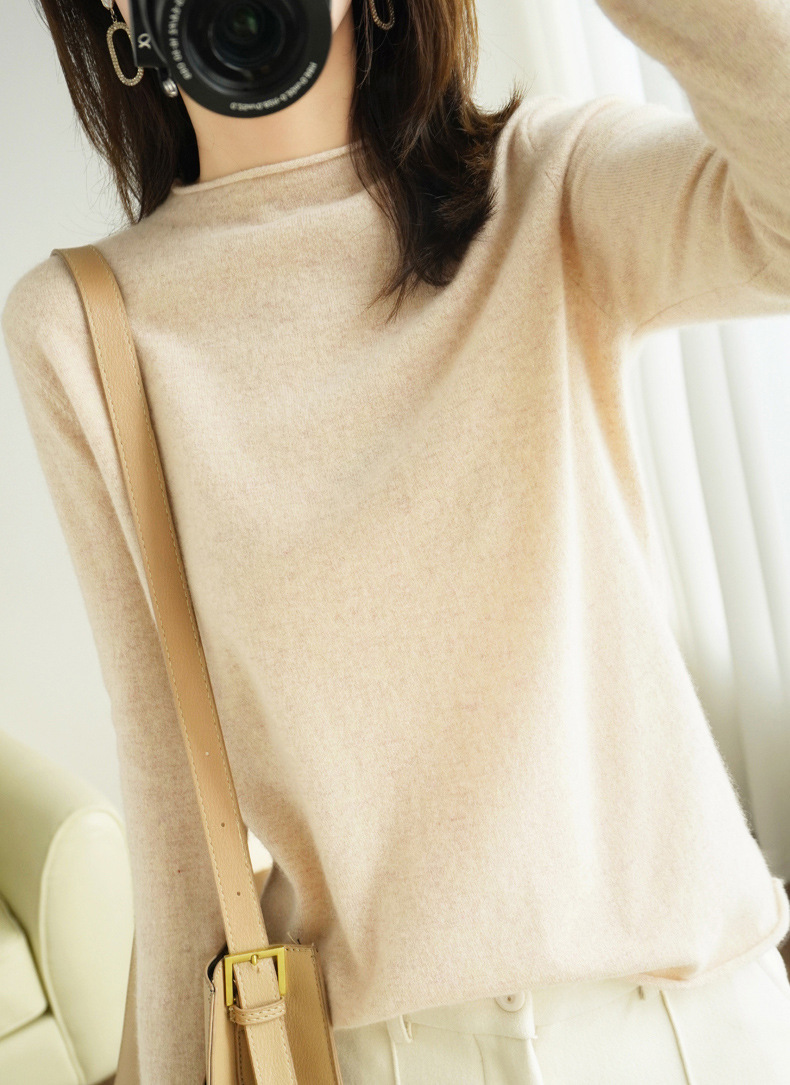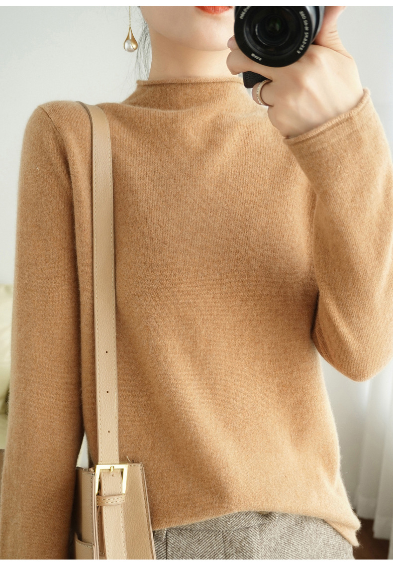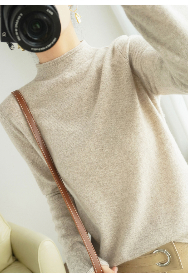 양모 하프 터틀넥 2025 가을 겨울 신상 여성용 짧은 풀오버 한국 스타일 슬림 니트 베이스 셔츠 스웨터스토어 가기