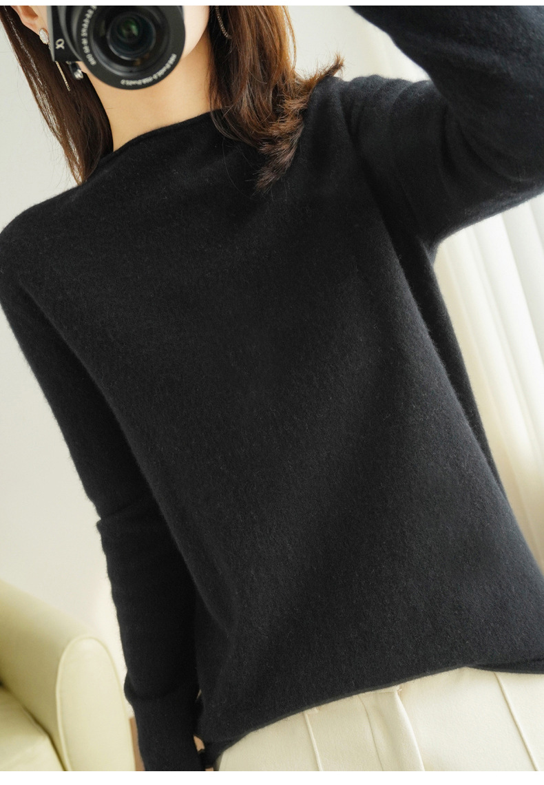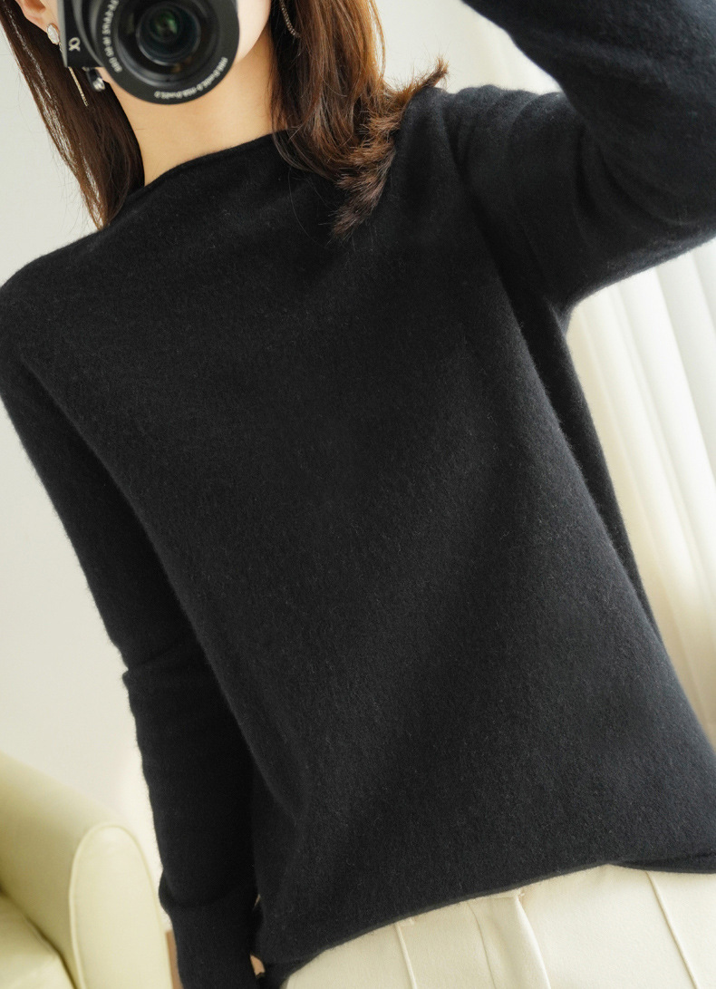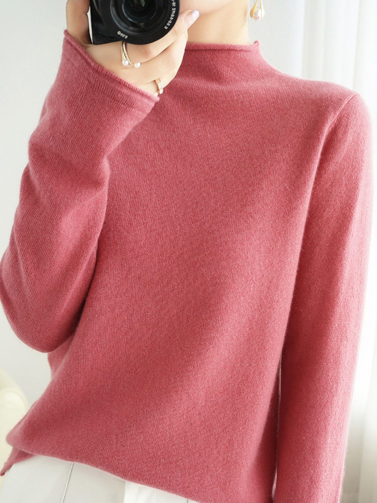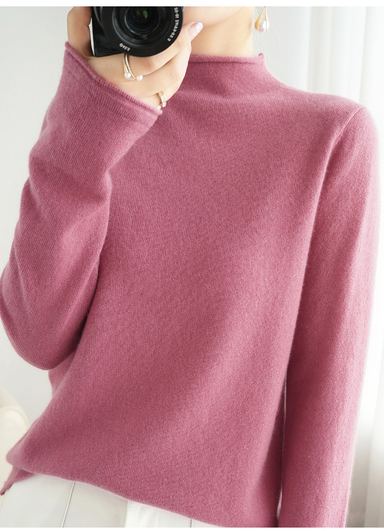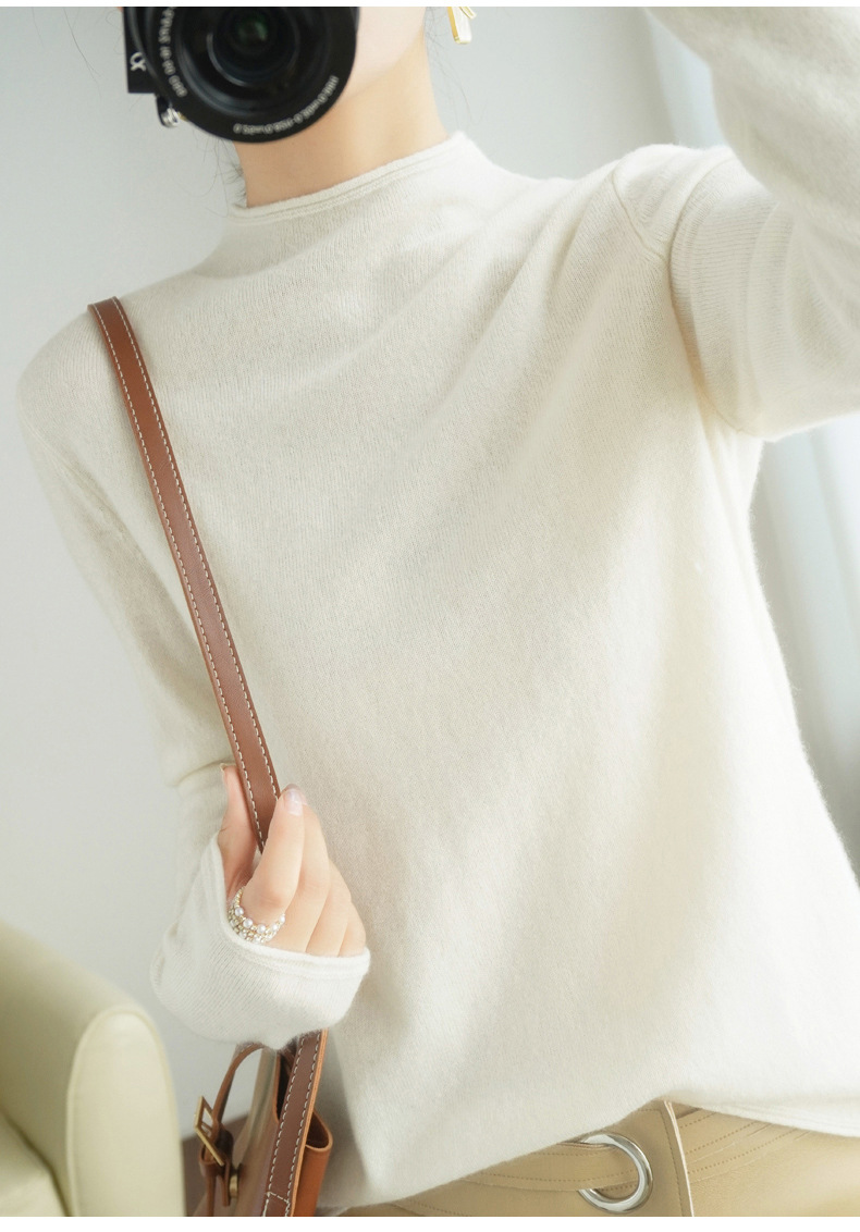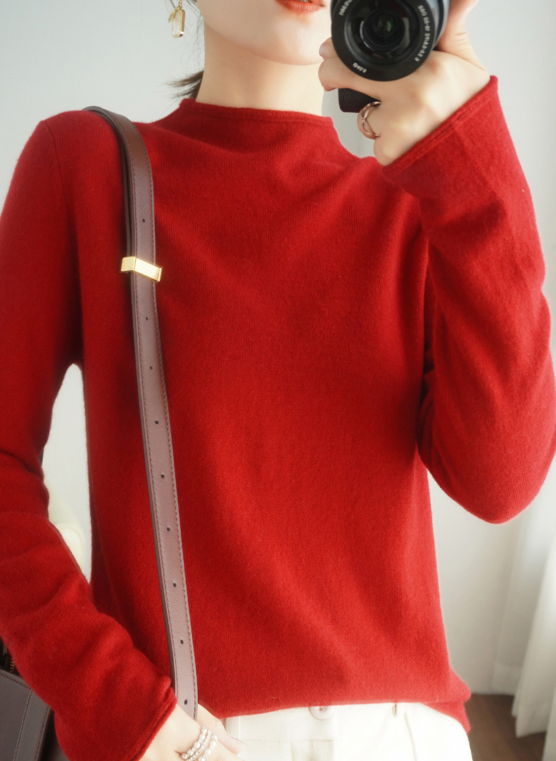 양모 하프 터틀넥 2025 가을 겨울 신상 여성용 짧은 풀오버 한국 스타일 슬림 니트 베이스 셔츠 스웨터스토어 가기