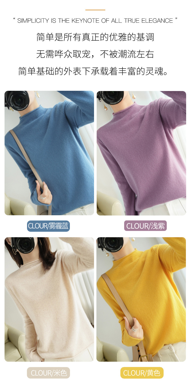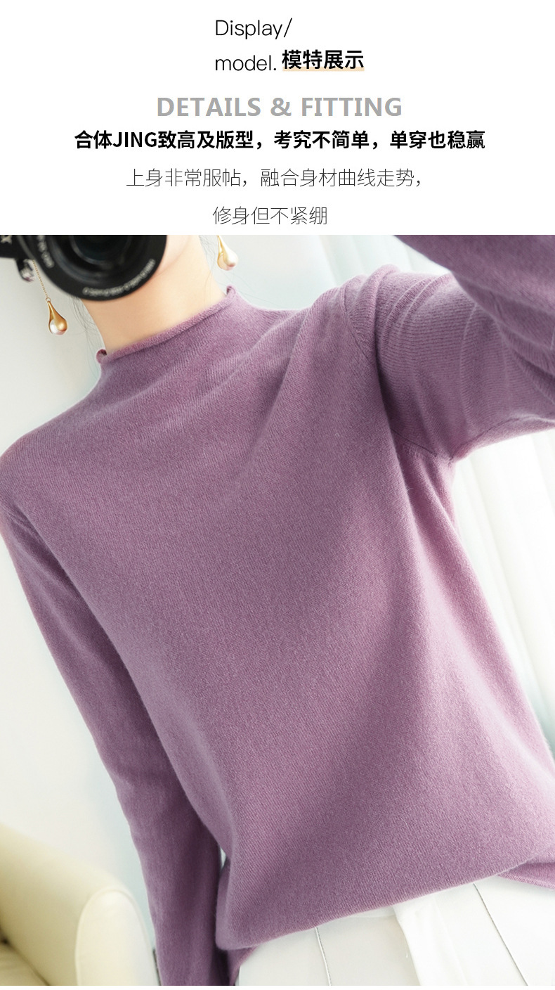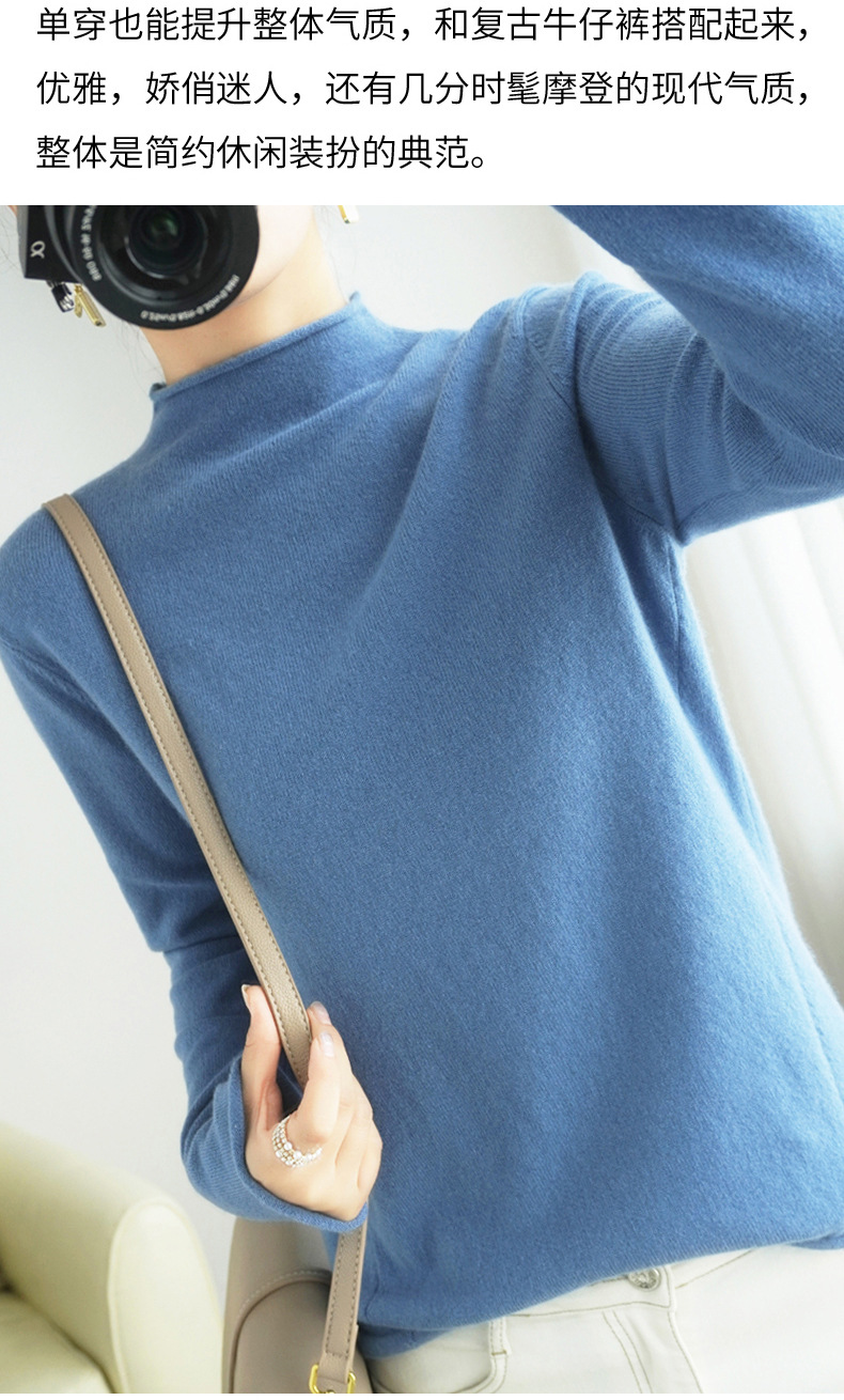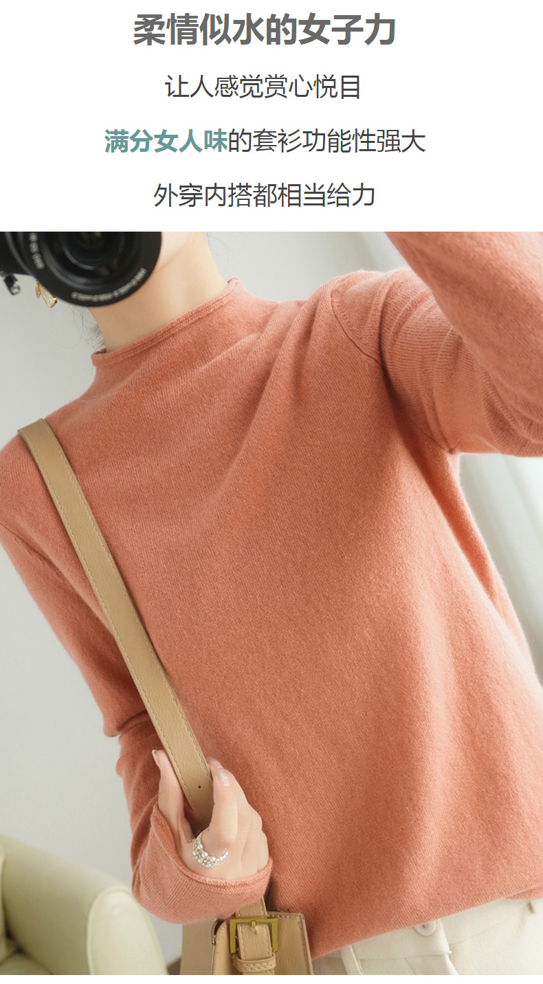 秋冬半高领加厚套头长袖毛衣通勤女针织衫短款修身非羊绒内搭打底